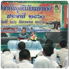 วันที่ 26 ธันวาคม 2560 สำนักงานป้องกันและบรรเทาสาธารณภัยจังหวัดนราธิวาส ได้จัดงานวันป้องกันอุบัติภัยแห่งชาติจังหวัดนราธิวาส ประจำปี 2560 ณ โรงเรียนบ้านค่าย โดยจัดอบรมให้ความรู้และการเตรียมพร้อมในการรับมือจากภัยพิบัติที่เกิดขึ้นแก่นักเรียน พร้อมทั้งมีการจำลองเหตุการณ์เสมือนจริงให้ปฏิบัติด้วย ซึ่งการจัดการครั้งนี้ได้รับเกียรติจาก นายสุรพร พร้อมมูล ผู้ว่าราชการจังหวัดนราธิวาส เป็นประธานในการจัดงาน โดยมีนายอมร นาคปก ผู้อำนวยการโรงเรียนบ้านค่าย และคณะครูได้ให้การต้อนรับคณะกรรมการการจัดงานวันป้องกันอุบัติภัยแห่งชาติจังหวัดนราธิวาสให้เป็นไปด้วยความเรียบร้อย บันทึกข้อมูลเมื่อ 26-12-2560