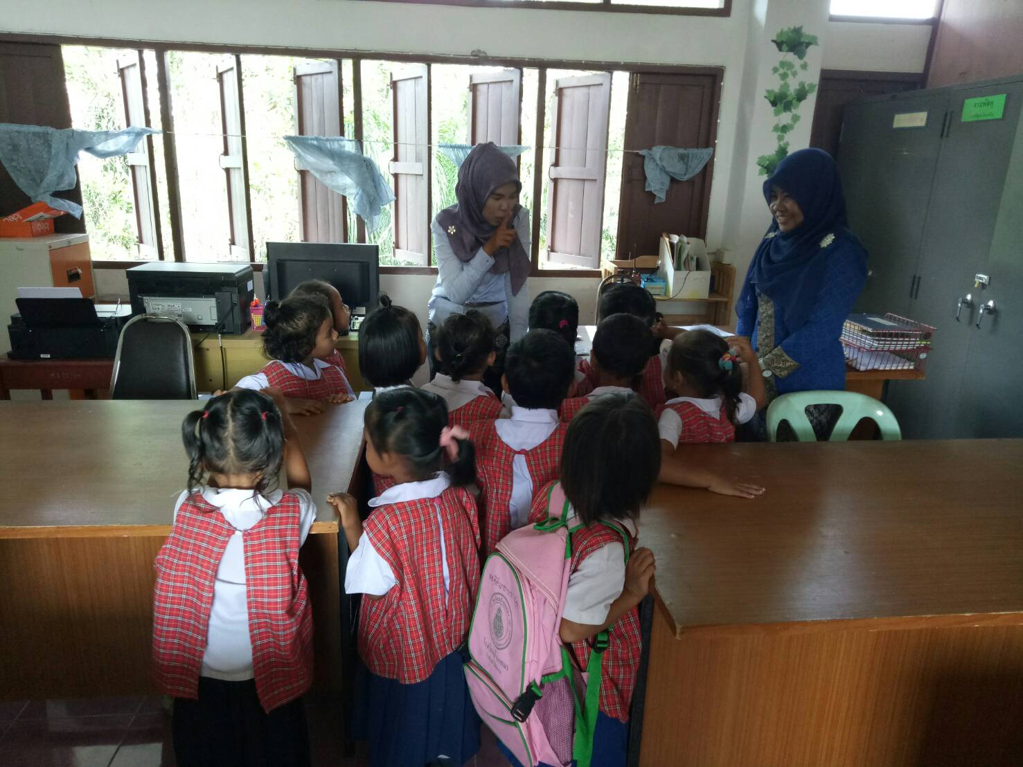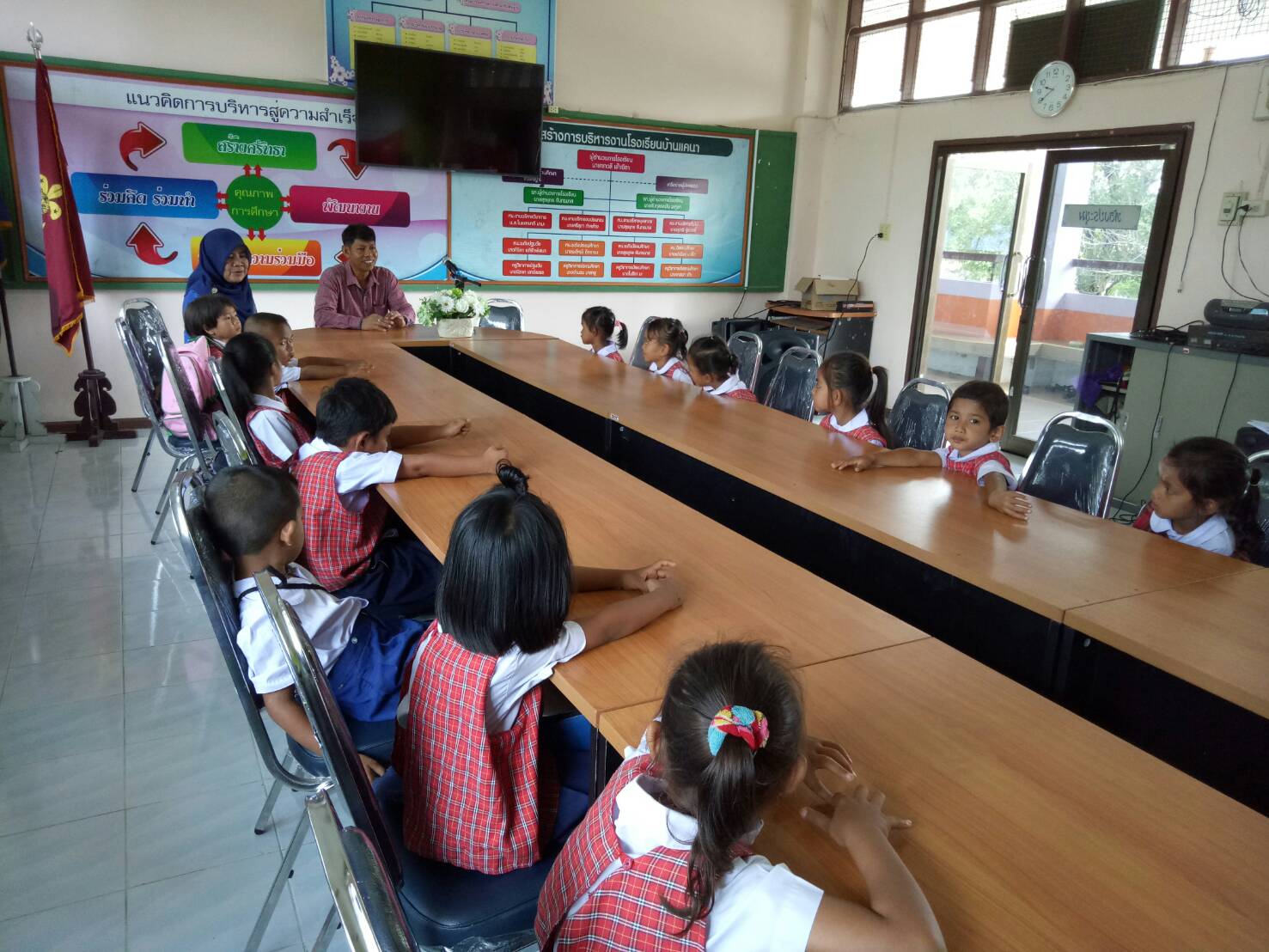 ในวันพฤหัสบดี ที่ ๑๗ พฤษภาคม ๒๕๖๑ ครูสอนอนุบาลได้นำเด็กนักเรียนชั้นอนุบาล ๓ เดินพบปะกับผู้อำนวยการโรงเรียนและครูวิชาการ เพื่อสร้างความรู้ความเข้าใจหลักการทำงานของผู้ใหญ้ในโรงเรียนบ้านแคนา และให้นักเรียนได้รู้จักห้องวิชาการ ห้องผู้อำนวยการ ห้องประชุมของคณะครู ห้องคอมพิวเตอร์ของโรงเรียน บันทึกข้อมูลเมื่อ 18-05-2561