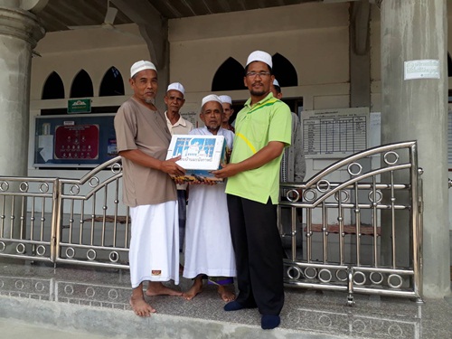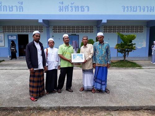 นายอูมา สาแล ครูอิสลามศึกษาแบบเข้ม ตัวแทนนายผดุงศักดิ์ ศูนย์คล้าย ผู้อำนวยการโรงเรียน มอบอินทผลัมให้แก่มัสยิดในตำบลมะนังตายอ ทั้งหมด 8 แห่ง เพื่อใช้ในการละศีลอดในเดือนรอมฎอน