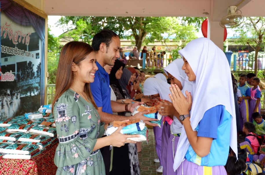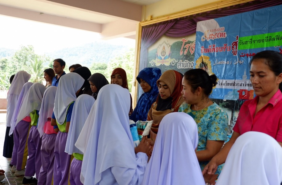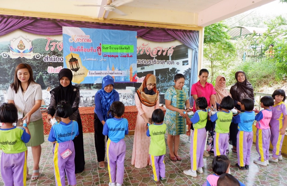 ผู้บริหาร คณะครู นักเรียนและผู้ปกครองร่วมกิจกรรมวันฮารีรายอ มอบทุนการศึกษาให้กับนักเรียนที่มีผลการเรียนดีและพฤติกรรมเหมาะสม อีกทั้งมอบข้าวสาร น้ำตาลด้วย