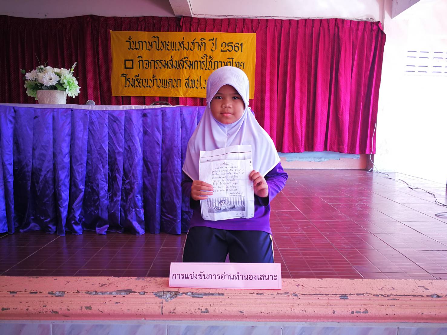 วันพฤหัสบดีที่ ๒๕ กรกฏาคม ๒๕๖๑ นำโดย นายเชาวลี เล๊าะยีตา ผู้อำนวยการโรงเรียนบ้านแคนา เป็นประธานในพิธีเปิดกิจกรรมส่งเสริมการใช้ภาษาไทย ในวันภาษาไทยแห่งชาติ ประจำปี ๒๕๖๑ ณ โรงเรียนบ้านแคนา เพื่อส่งเสริมทักษะการเรียนรู้และพัฒนาผลสัมฤทธิ์ทางการเรียนให้สูงขึ้น บันทึกข้อมูลเมื่อ 25-07-2561