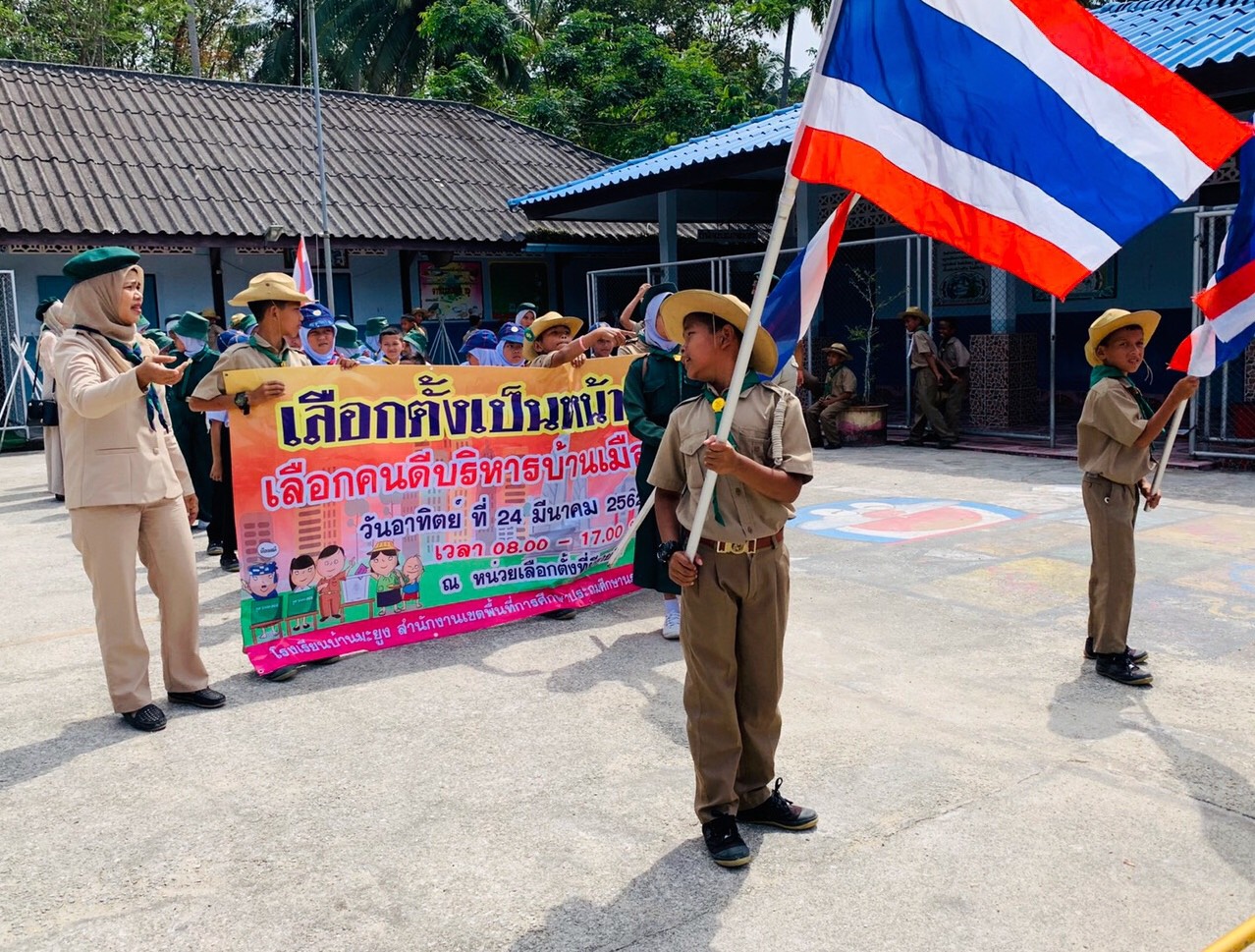 วันที่ 13 มีนาคม 2562 เวลา 09.30 นายอับดุลเราะฮ์มาน ดือราซอ ผู้อำนวยการโรงเรียนบ้านมะยูง พร้อมด้วยคณะครู บุคลากรและนักเรียนโรงเรียนบ้านมะยูงได้จัดกิจกรรมเดินรณรงค์การเลือกตั้ง ปี พ.ศ.2562 เพื่อเชิญชวนให้ชาวบ้านในหมู่บ้าน บ้านมะยูงออกมาใช้สิทธิเลือกตั้งสมาชิกสภาผู้แทนราษฎร ในวันอาทิตย์ ที่ 24 มีนาคม 2562 โดยพร้อมเพรียงกัน บันทึกข้อมูลเมื่อ 15-03-2562