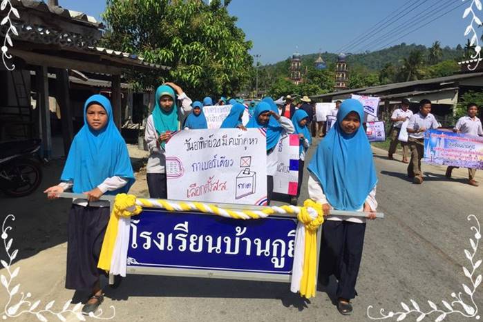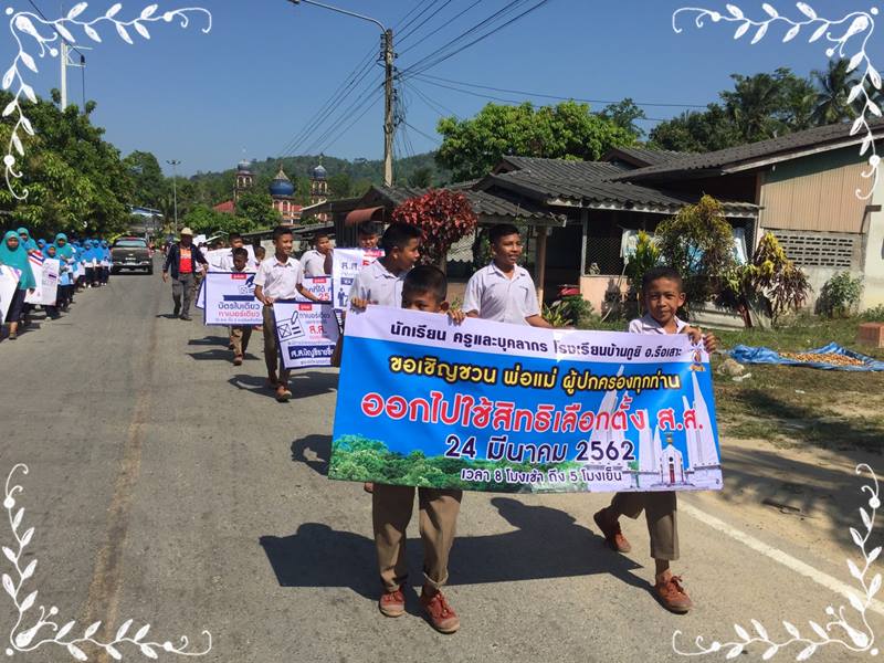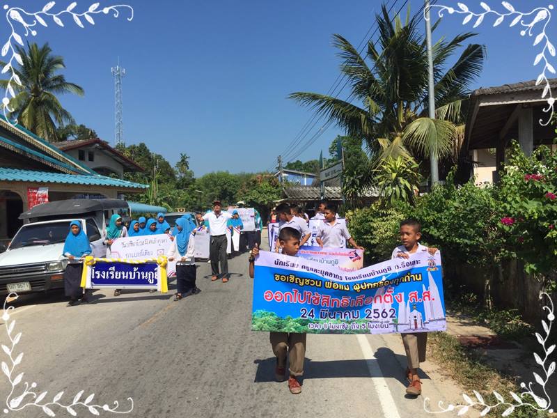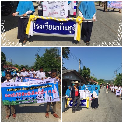 เมื่อวันที่ 12 มีนาคม 2562 เวลา 14.15 น. คณะครู และนักเรียนโรงเรียนบ้านกูยิ (รือเสาะ) ร่วมจัดกิจกรรมเดินรณรงค์การเลือกตั้งสมาชิกสภาผู้แทนราษฎร ภายในชุมชนเขตบริการของโรงเรียน (อิลยัส : ข่าว/คณะครู : ภาพ)
