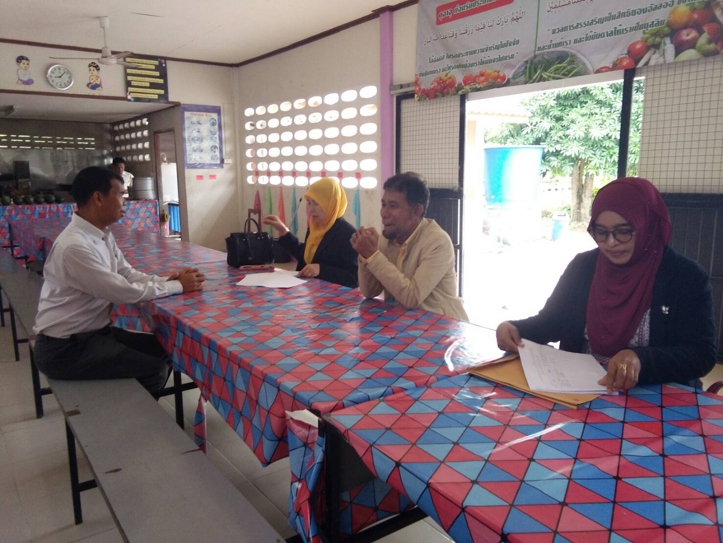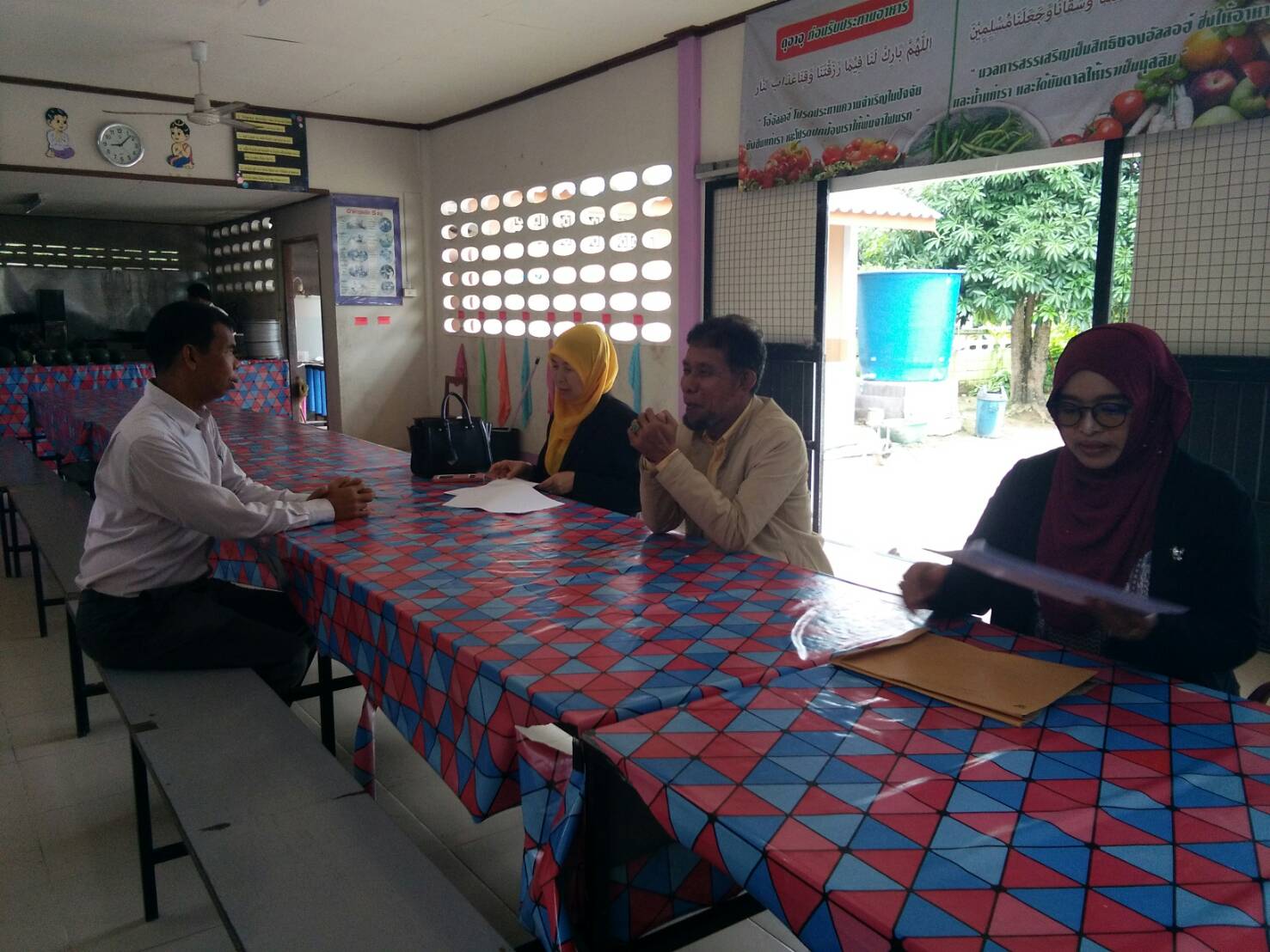 วันนี้ วันพฤหัสบดี ที่ 18 กรกฎาคม. 2562 นายพันธกานต์ กะเส็มสุริยะ ได้ต้อนรับคณะกรรมการอาหารกลางวันมาเยี่ยมและตรวจสอบ โดยมี นายอดินันท์ ศรีสุพรรณพงศ์ นางสาวอามีเนาะ มามุ นางสาวรอซีด๊ะ เฮ็ง และนายจรินทร์ ขวัญนุ้ย