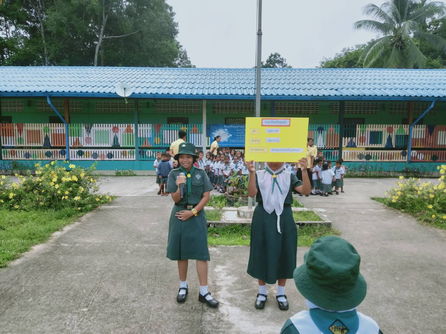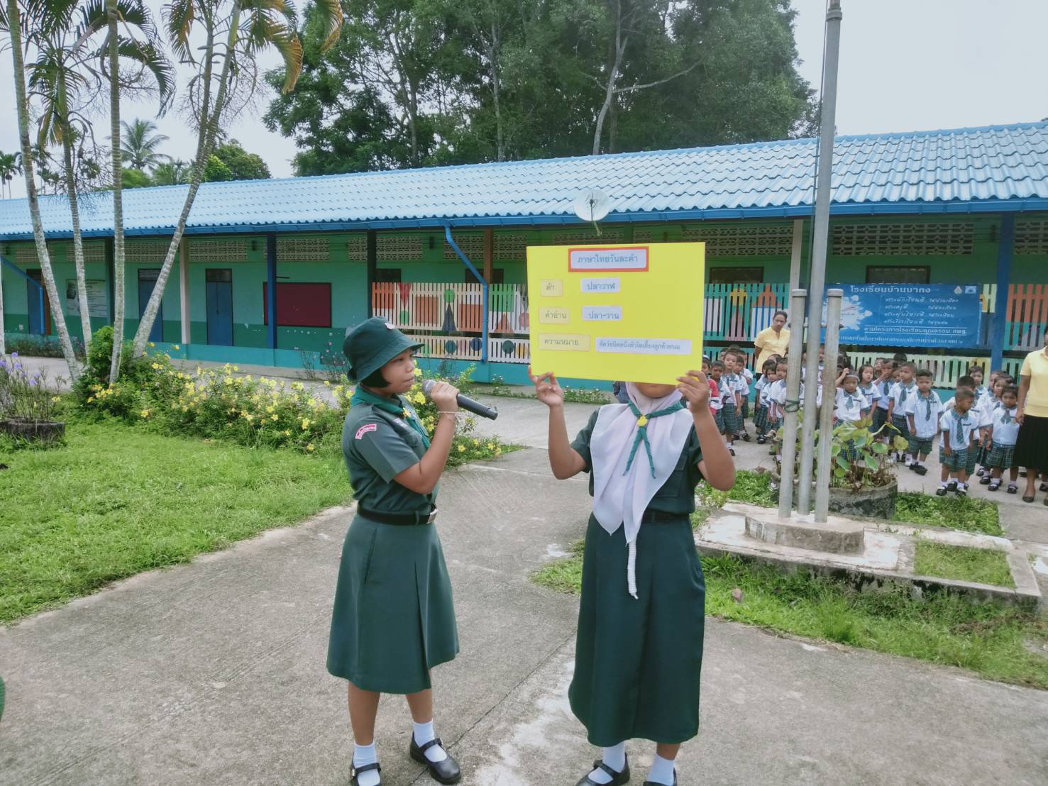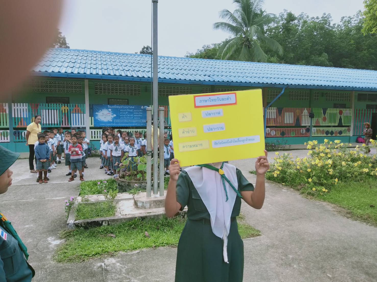 วันที่ 25 กรกฎาคม 2562 ทางโรงเรียนบ้านบากง ได้ให้เด็กทำกิจกรรมเรียนรู้ด้านภาษาไทยหน้าเสาธง คือกิจกรรมภาษาไทยวันละคำ เพื่อให้เด็กมีความรู้ด้านทักษะภาษาไทยเพิ่มมากขึ้น