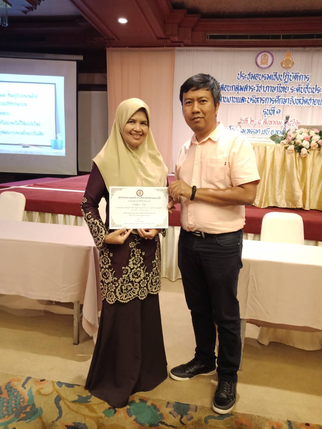 นางอำนวย มาลายู ครูโรงเรียนบ้านแคนา ได้เข้ารับการประชุมอบรมเชิงปฏิบัติการพัฒนาครูผู้สอนกลุ่มวิชาภาษาไทย ระดับชั้นประถมศึกษาปีที่ ๑ ศูนย์ประสานงานและบริหารการศึกษาจังหวัดชายแดนภาคใต้ รุ่นที่ ๑ ระหว่างวันท่ี่ ๒ - ๔ สิงหาคม ๒๕๖๒ ณ โรงแรมหรรษา เจบี อำเภอหาดใหญ่ จังหวัดสงขลา บันทึกข้อมูลเมื่อ 05-08-2562