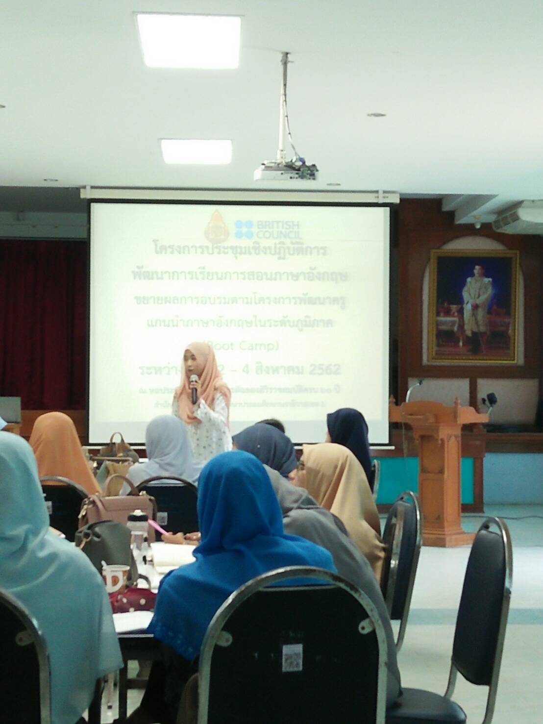 ด้วย นางนะอีหม๊ะ ดือราแม ครูโรงเรียนบ้านแคนา ได้เข้ารับการอบรมโครงการประชุมเชิงปฎิบัติการพัฒนาการเรียนการสอนภาษาอังกฤษขยายผลการอบรมตามโครงการพัฒนาครูแกนนำภาษาอังกฤษในระดับภูมิภาค ระหว่างวันที่ ๒-๔ สิงหาคม ๒๕๖๒ ณ สำนกงานเขตพื้นที่การศึกษาประถมศึกษานราธิวาส เขต ๑ บันทึกข้อมูลเมื่อ 05-08-2562