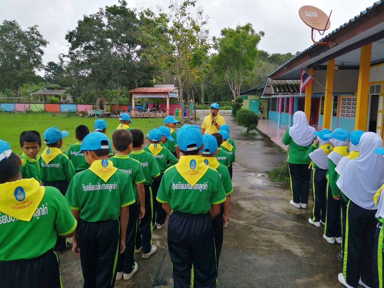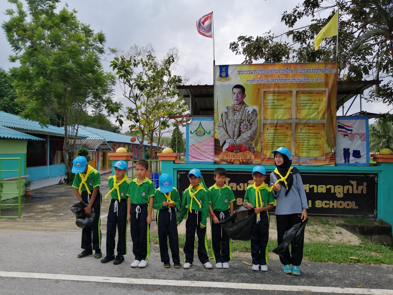 โรงเรียนบ้านศาลาลูกไก่ คณะครูและนักเรียนทำกิจกรรมจิตอาสาทำดีเพื่อด้วยการทำความสะอาดบริเวณโรงเรียนและในชุมชนศาลาลูกไก่