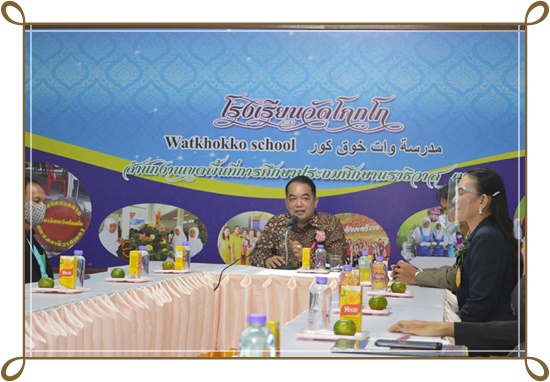 10 มิถุนายน 2563 เวลา 10.30 น. นายสุรศักดิ์ อินศรีไกร ที่ปรึกษาด้านนโยบายและแผน สพฐ. ปฏิบัติหน้าที่ผู้ตรวจราชการ ลงพื้นที่ตรวจราชการของสำนักงานคณะกรรมการการศึกษาขั้นพื้นฐาน ประจำปี 2563 ณ โรงเรียนวัดโคกโก สังกัด สำนักงานเขตพื้นที่การศึกษาประถมศึกษานราธิวาส เขต 1 เพื่อตรวจเยี่ยมบ้านของนักเรียนในการเรียนการสอนทางไกลภายใต้สถานการณ์การแพร่ระบาดของไวรัสโคโรน่า (COVID - 19) ทั้งนี้ มีนางสาววันเพ็ญ นุ้ยสกุล และคณะผู้บริหารรวมถึงคณะครูให้การต้อนรับ และบรรยายสรุปภาพรวมของโรงเรียน บันทึกข้อมูลเมื่อ 10-06-2563