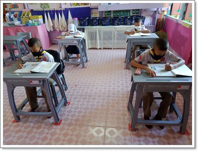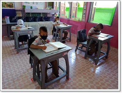 ช่วงเปิดภาคเรียนที่ ๑ ปีการศึกษา ๒๕๖๓ ในวันพุธที่ ๑ กรกฎาคม ๒๕๖๓ ทางโรงเรียนบ้านเปล จัดกิจกรรมการเรียนการสอนวันแรก โดยทางโรงเรียนได้รับความร่วมมือจากทางเจ้าหน้าที่สาธารณสุข และเจ้าหน้าที่ อสม.จากโรงพยาบาลส่งเสริมสุขภาพชุมชนตำบลกะลุวอเหนือ ร่วมกิจกรรมการคัดกรองนักเรียนบริเวณหน้าประตูทางเข้าโรงเรียน เพื่อป้องกันการแพร่ระบาดของโรคติดเชื้อไวรัสโควิด-๑๙ และทางโรงเรียนได้ปฏิบัติตามมาตรฐานของกรมอนามัยกระทรวงสาธารณสุข โดยมีการตั้งจุดคัดกรอง บริเวณหน้าห้องเรียน การเว้นระยะห่างระหว่างกันในชั้นเรียน (Social Distancing) คณะครู บุคลากร และนักเรียนทุกคนสวมใส่เฟสชิล สวมใส่แมส มาโรงเรียน และมีการติดตั้งแอปพลิเคชัน "ไทยชนะ" ภายในโรงเรียนเพื่อให้ผู้ที่เข้า-ออก โรงเรียนได้เช็คอินและเช็ดเอ้าท์เพื่อป้องกันการแพร่ระบาดของโรคติดเชื้อไวรัสโควิด- ๑๙ ซึ่งมีการเฝ้าระวังอย่างเข้มข้นทุกกิจกรรมที่โรงเรียนให้นักเรียนดำเนินการ โดยวันแรกการดำเนินการจัดกิจกรรมการเรียนการสอนภายใต้สถานการณ์การระบาดของของโรคติดเชื้อไวรัสโควิด- ๑๙ ของโรงเรียนเป็นไปด้วยความเรียบร้อย บันทึกข้อมูลเมื่อ 06-07-2563