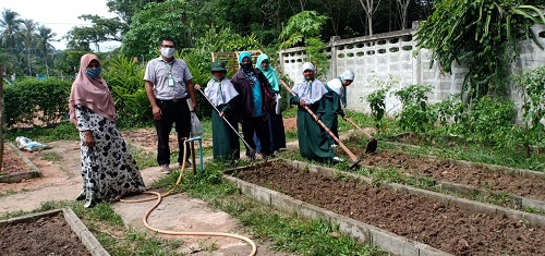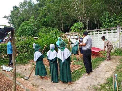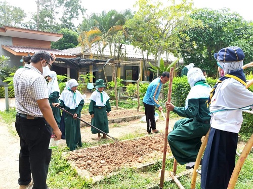 วันที่ 5 เดือน สิงหาคม 2563 นำโดย ผู้อำนวยการโรงเรียน นายซอลาฮุดดีน มาน๊ะ พร้อมด้วยคณะครู และบุคลากรสถานศึกษา กิจกรรมนี้ได้รับการสนับสนุนจากหน่วยงานเกษตรอำเภอรือเสาะ ทั้งนี้ทางหน่วยงานได้สอนวิธีการปลูกผัก เช่น ผักคะน้า แตงกวา ให้กับนักเรียน และยังมอบเมล็ดพันธ์พืชให้กับโรงเรียน เพื่อส่งเสริมให้นักเรียนปลูกผักสวนครัวและนำมาใช้ในการประกอบอาหารกลางวันอีกด้วย บรรยากาศเป็นไปด้วยความเรียบร้อย บันทึกข้อมูลเมื่อ 06-08-2563
