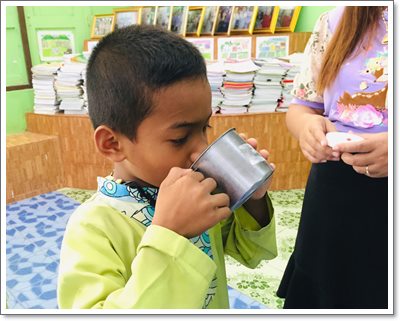 นักเรียนโรงเรียนบ้านเปล โรงเรียนในโครงการตามพระราชดำริสมเด็จพระกนิษฐาธิราชเจ้า กรมสมเด็จพระเทพรัตนราชสุดาฯ สยามบรมราชกุมารี ได้รับการสนับสนุนสารไอโอดีนและแคลเซียมจากสำนักงานเขตพื้นที่การศึกษาประถมศึกษานราธิวาส เขต ๑ เพื่อจัดให้นักเรียนของโรงเรียน ดื่มไอโอดีน เพื่อสร้างไทรอยด์ฮอร์โมน ซึ่งเป็นส่วนสำคัญสำหรับกระบวนการเผาผลาญทางเคมีให้เป็นพลังงานในร่างกาย ช่วยในการสร้างและพัฒนาโครงสร้างของสมองเด็ก ให้มีประสิทธิภาพ โดยต่อมไทรอยด์นั้นมีผลต่อสภาพจิตใจ สภาพของผม ผิวหนัง เล็บ และ ฟัน ของร่างกาย การเปลี่ยนของแคโรทีนเป็นวิตามิน ช่วยส่งเสริมการเจริญเติบโต และกระตุ้นอัตราการเผาผลาญ โดยช่วยร่างกายเผาผลาญไขมัน กระตุ้นให้หัวใจทำงานได้ดีขึ้น เพิ่มการเคลื่อนย้ายแคลเซียม และฟอสฟอรัสจากกระดูก และช่วยในการขับถ่ายปัสสาวะและควบคุมการกระจายของน้ำตามอวัยวะต่างๆ ส่วน แคลเซียม ช่วยในการสร้างเนื้อกระดูกและป้องกันการสูญเสียเนื้อกระดูก การได้รับแคลเซียมจากอาหารอย่างเพียงพอจะช่วยป้องกันการสูญเสียมวลกระดูก ทางโรงเรียนได้รับการสนับสนุนไอโอดีนและแคลเซียม เพื่อดูแลสุขภาพและโภชนาการนักเรียน อย่างต่อเนื่อง ตามแนวทางตามพระราชดำริฯ จนเกิดผลเชิงประจักษ์ด้านสุขภาพนักเรียนแข็งแรง สมบูรณ์ บันทึกข้อมูลเมื่อ 26-10-2563