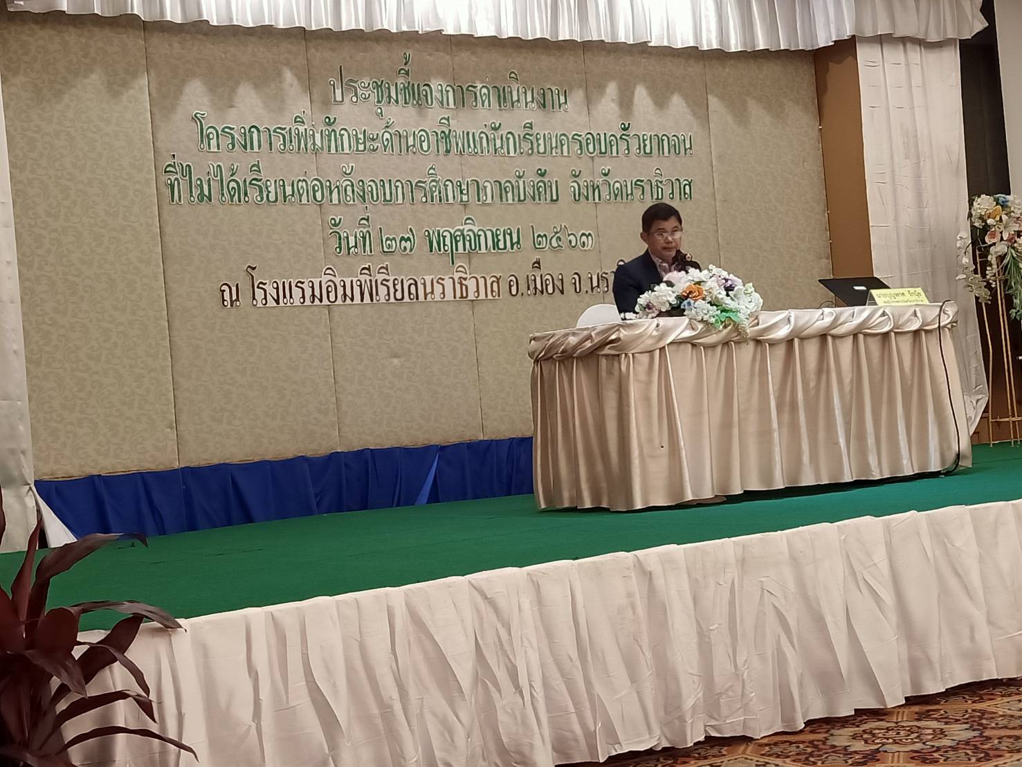 วันศุกร์ที่ 27 พฤศจิกายน พ.ศ.2563 เวลา ๐๘.๓๐ น นางนะอีหม๊ะ ดือราแม ครูโรงเรียนบ้านแคนา ผู้รับผิดชอบฝ่ายแนะแนวเข้าร่วมประชุมชี้แจงการดำเนินงาน โครงการเพิ่มทักษะด้านอาชีพแก่นักเรียนครอบครัวยากจนที่ไม่ได้เรียนต่อหลังจากจบการศึกษาภาคบังคับ จังหวัดนราธิวาส ณ โรงแรมอิมพีเรียล อ.เมือง จ.นราธิวาส