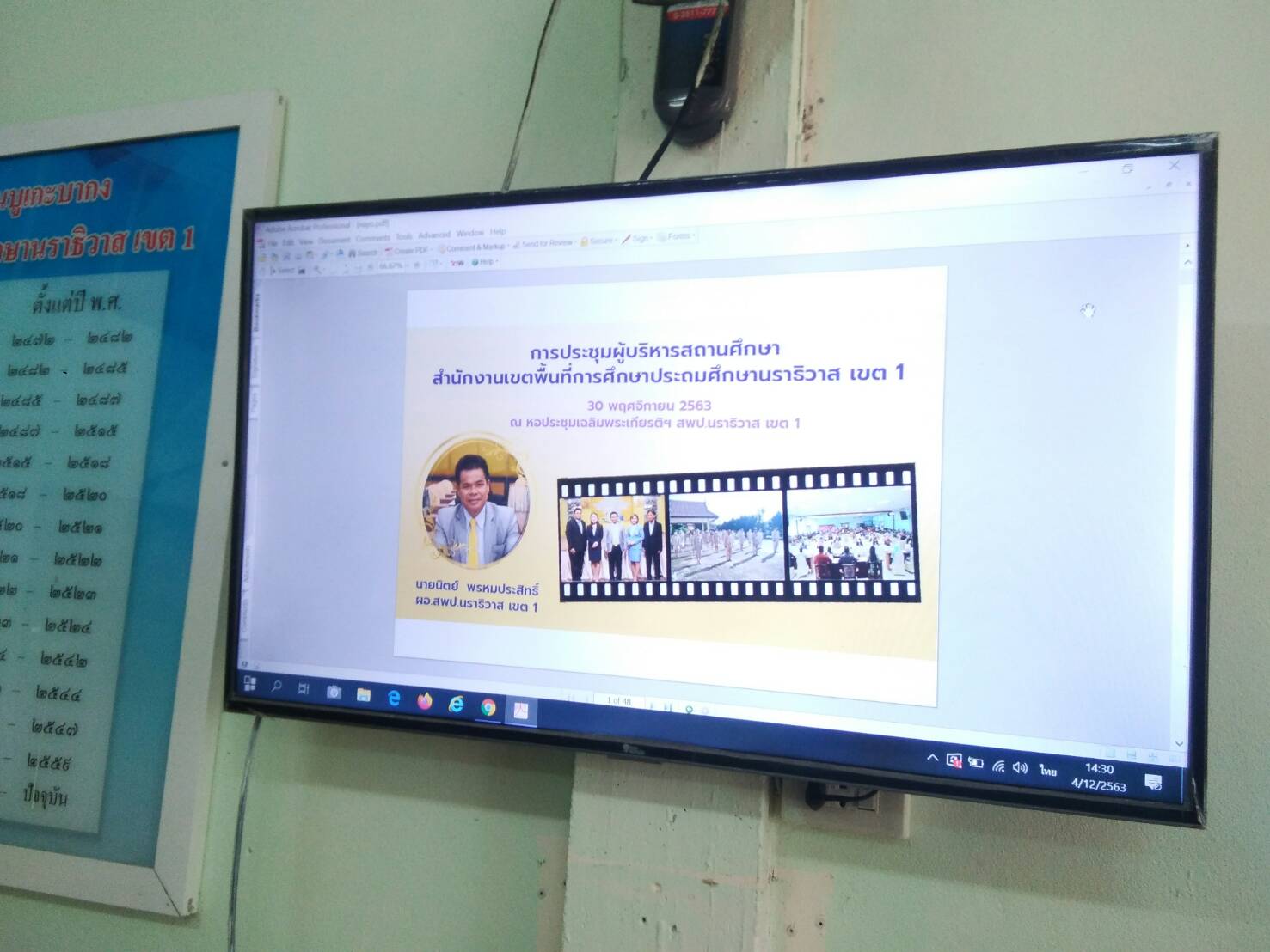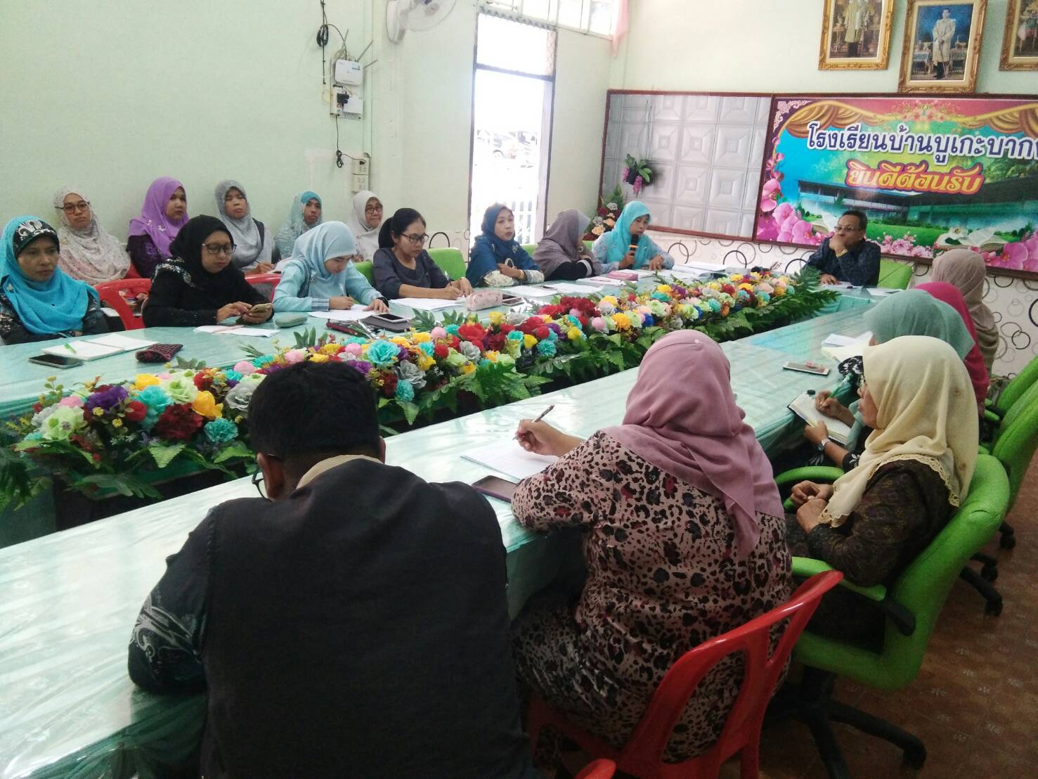 วันที่ 4 ธันวาคม 2563 เวลา 14.20 น. นายเสรีพงษ์ คงสา ผู้อำนวยการโรงเรียนบ้านบูเกะบากงพร้อมด้วย นางซัลวานี ดิงนามอ รอง ผอ.โรงเรียนบ้านบูเกะบากง ได้ประชุมครูและบุคลากรทางการศึกษา เพื่อชี้แจงนโยบายของ นายนิตย์ พรหมประสิทธิ์ ผอ.สพป.นราธิวาส เขต 1 ให้บุคลากรทุกคนทราบและขับเคลื่อนนโยบายดังกล่าว เพื่อพัฒนาองค์กรให้มีประสิทธิภาพและเกิดประโยชน์สูงสุดกับนักเรียนต่อไป บันทึกข้อมูลเมื่อ 09-12-2563