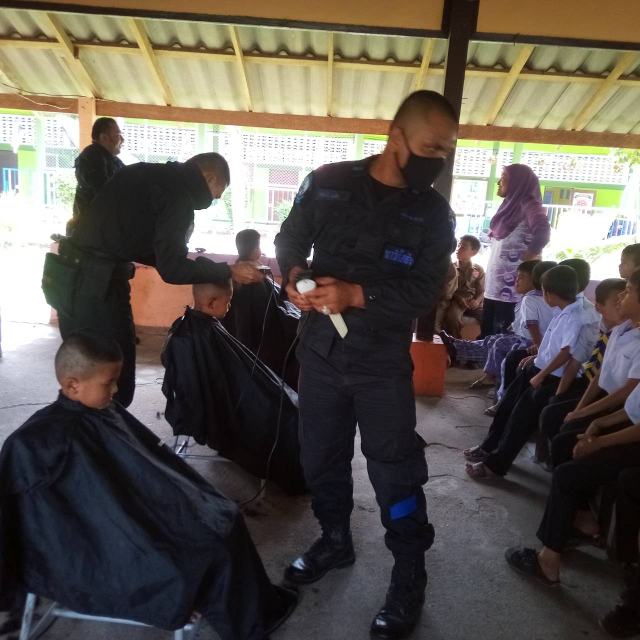 9 ธันวาคม 2563 ว่าที่นาวาตรี สุบรรณ สงสวัสดิ์ ผบ.ร้อย.ทพ.นย.ที่ 3 ฐานปฏิบัติการบ้านชูโว มอบหมายให้ชุด ชป.กร.ได้ลงพื้นที่ให้บริการตัดผมเคลื่อนที่ให้กับนักเรียนโรงเรียนบ้านตันหยง โดยไม่คิดค่าใช้จ่าย เพื่อเป็นการลดภาระค่าใช้จ่ายภายในครัวเรือน โดยมีนักเรียนเข้ารับบริการ จำนวน 15 คน ทางด้านคณะครู ต่างรู้สึกขอบคุณเจ้าหน้าที่ทหารพรานที่ได้ออกให้บริการตัดผมฟรีถึงที่โรงเรียน ซึ่งสร้างความสุขให้กับนักเรียนเป็นอย่างมาก