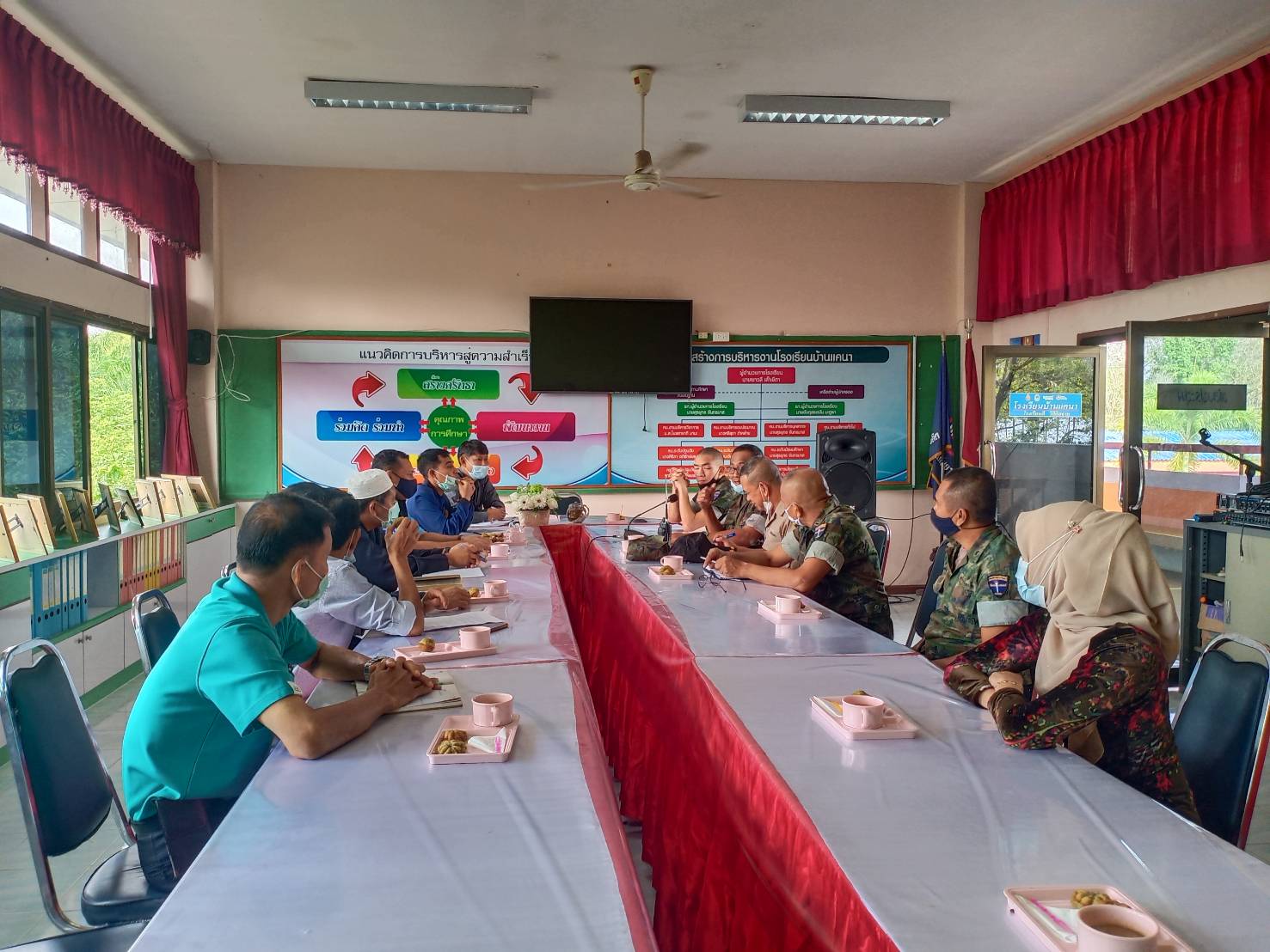 วันศุกร์ที่ 15 มกราคม 2564 เวลา 09.30 น นายเชาวลี เล๊าะยีตา ผู้อำนวยการโรงเรียนบ้านแคนา พร้อมด้วย ร.ท.ณัฐวุฒ บัวลอย ผบ.ร้อย ชป.กร. นาย มูฮำหมัดกอดรี ต่วนมหญีห์ ปลัดอำเภอเมืองนราธิวาส คณะครู และ ผู้นำชุมชนได้ร่วมประชุมหารือและวางแผนการปฏิบัติการฝึกแผนเผชิญเหตุ ณ ห้องประชุมโรงเรียนบ้านแคนา บันทึกข้อมูลเมื่อ 15-01-2564