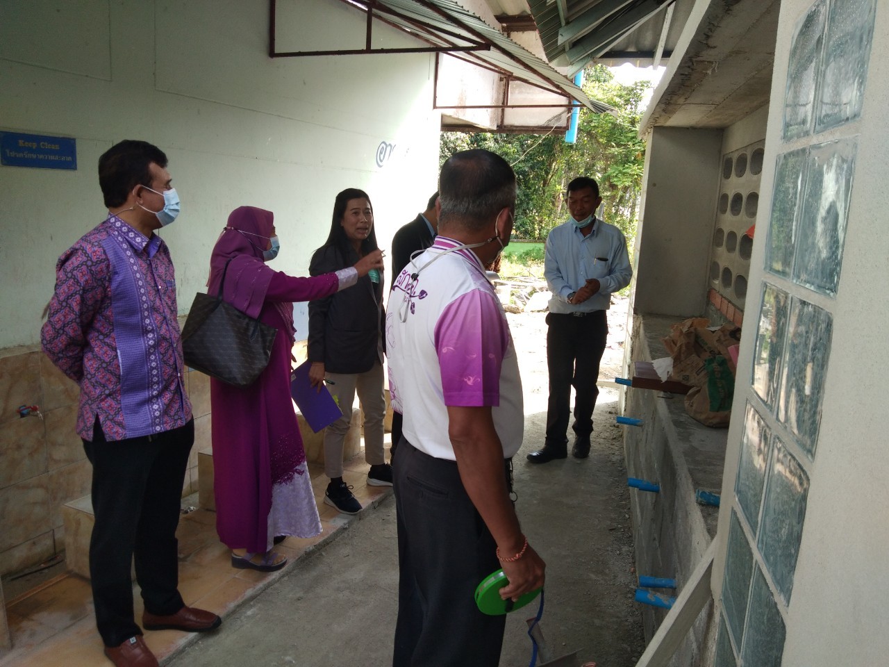 นายสราวุธ ยอดรักษ์ รองผู้อำนวยการสำนักงานเขตพื้นที่การศึกษาประถมศึกษานราธิวาส เขต 1 พร้อมด้วยนางอุบลรัตน์ สนิท ผู้อำนวยการกลุ่มบริหารการเงินและสินทรัพย์ ตรวจเยี่ยมงานห้องน้ำห้องส้วมนักเรียนหญิง