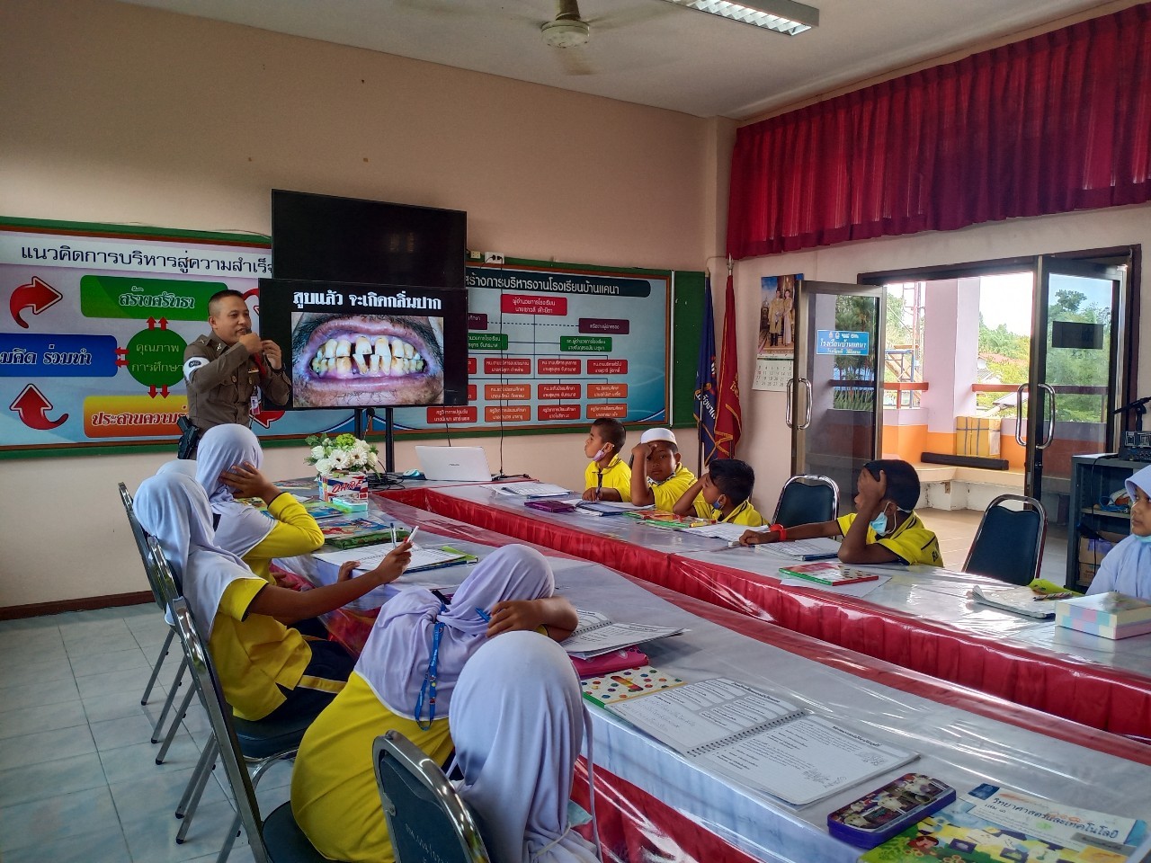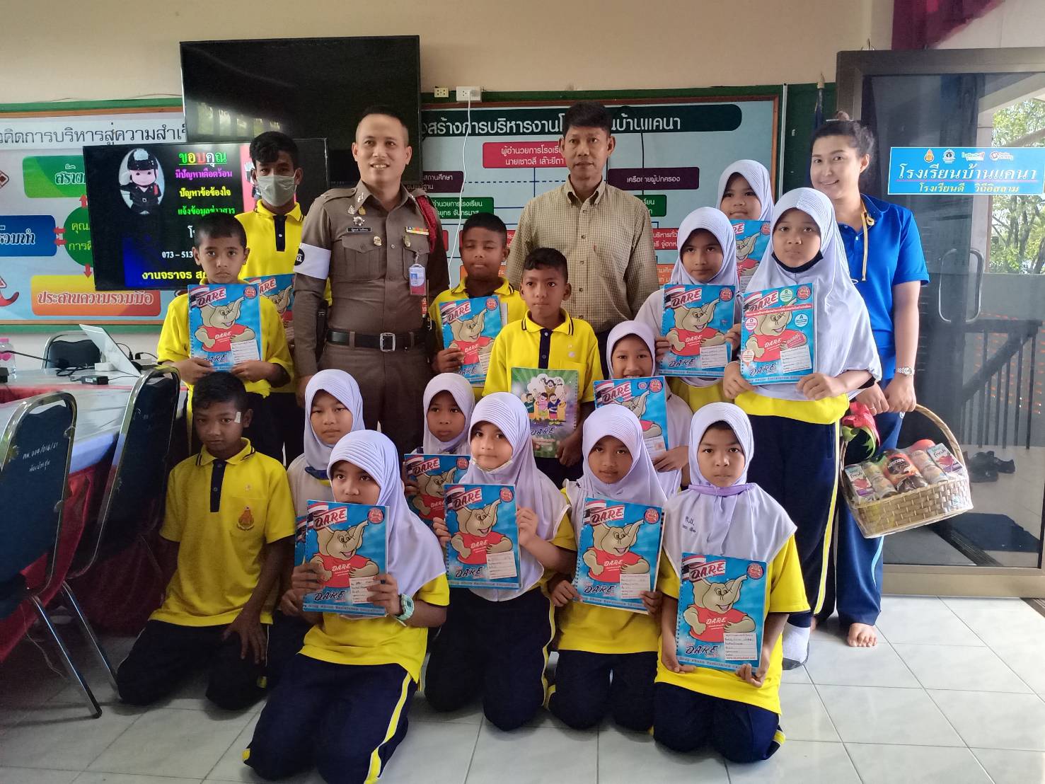 เมื่อวันที่ ๑๐ มีนาคม พ.ศ.๒๕๖๔ นายเชาวลี เล๊าะยีตา ผู้อำนวยการโรงเรียนบ้านแคนา มอบกระเช้าแทนคำขอบคุณ ให้แก่เจ้าหน้าที่ตำรวจสถานีตำรวจภูธร จังหวัดนราธิวาส ที่มาถ่ายทอดความรู้และจัดการเรียนการสอน ครู DARE ให้กับนักเรียน ณ โรงเรียนบ้านแคนา บันทึกข้อมูลเมื่อ 12-03-2564
