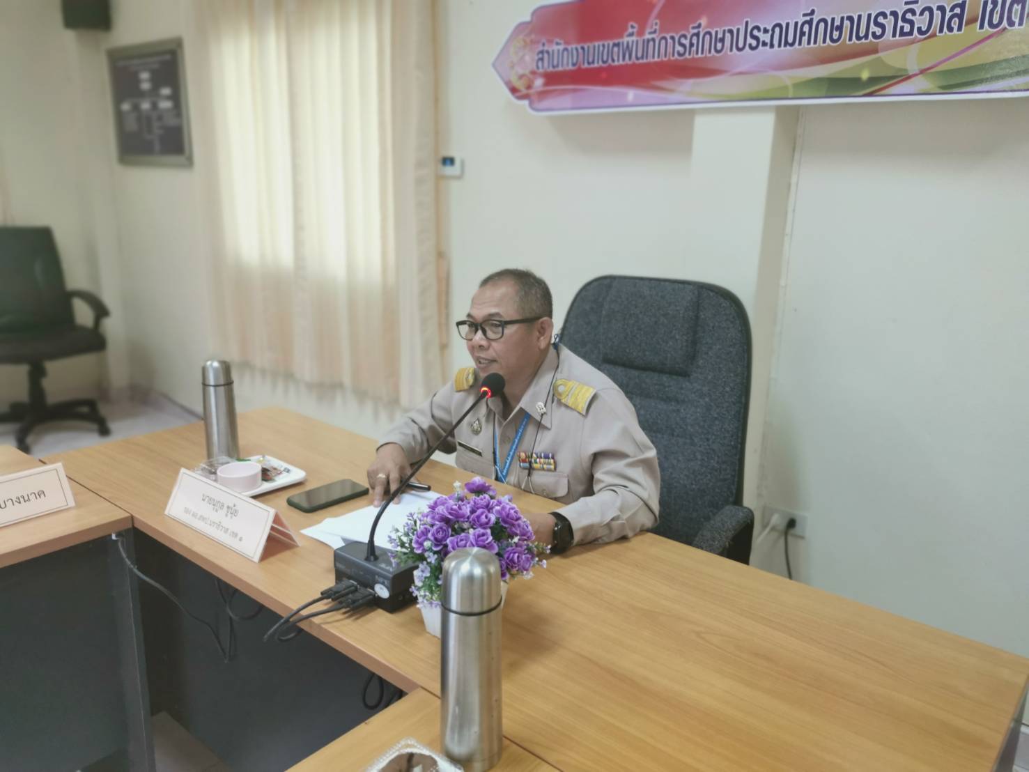 Çѹ·Õè 22 ÁÕ¹Ò¤Á 2564 àÇÅÒ 09.30 ¹. ¹Ò¹ԵÂì ¾ÃËÁ»ÃÐÊÔ·¸Ôì ¼Í.ʾ».¹ÃÒ¸ÔÇÒÊ à¢µ 1 ÁͺËÁÒÂãËé ¹Ò¹ءÙÅ ªÙ¹Øé Ãͧ ¼Í.ʾ».¹ÃÒ¸ÔÇÒÊ à¢µ 1 à»ç¹»Ãиҹ㹡ÒûÃЪØÁ¤³Ð¡ÃÃÁ¡ÒõԴµÒÁ¡ÒôÓà¹Ô¹§Ò¹â¤Ã§¡ÒèѴÊÃÃà§Ô¹Íش˹ع¹Ñ¡àÃÕ¹ÂÒ¡¨¹¾ÔàÈÉẺÁÕà§×èÍ¹ä¢ ã¹Ê¶Ò¹ÈÖ¡ÉÒ »ÃШӻաÒÃÈÖ¡ÉÒ 2563 ¤ÃÑé§·Õè 2 à¾×èͤѴàÅ×Í¡âçàÃÕ¹µé¹áººâ¤Ã§¡ÒèѴÊÃÃà§Ô¹Íش˹ع¹Ñ¡àÃÕ¹ÂÒ¡¨¹¾ÔàÈÉẺÁÕà§×è͹ä¢ã¹Ê¶Ò¹ÈÖ¡ÉÒ »ÃШӻաÒÃÈÖ¡ÉÒ 2563 ³ Ëéͧ»ÃЪØÁºÒ¹ºØÃÕ Ê¾».¹ÃÒ¸ÔÇÒÊ à¢µ 1 ºÑ¹·Ö¡¢éÍÁÙÅàÁ×èÍ 22-03-2564