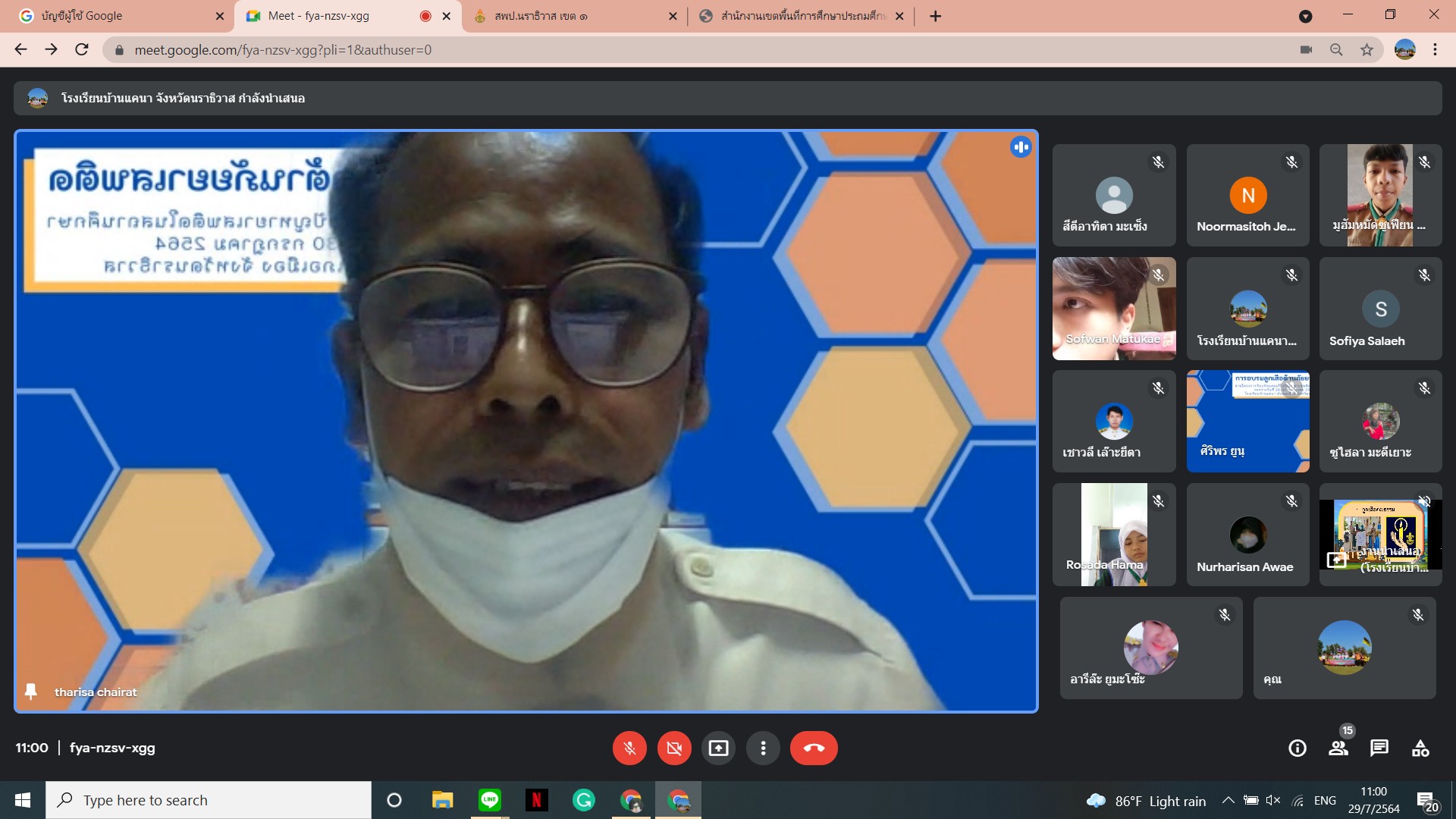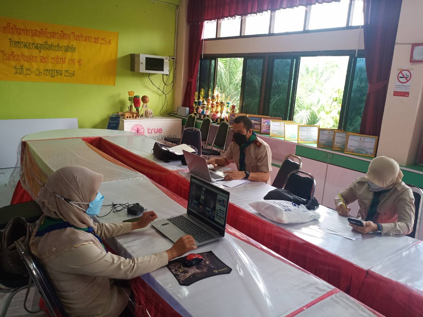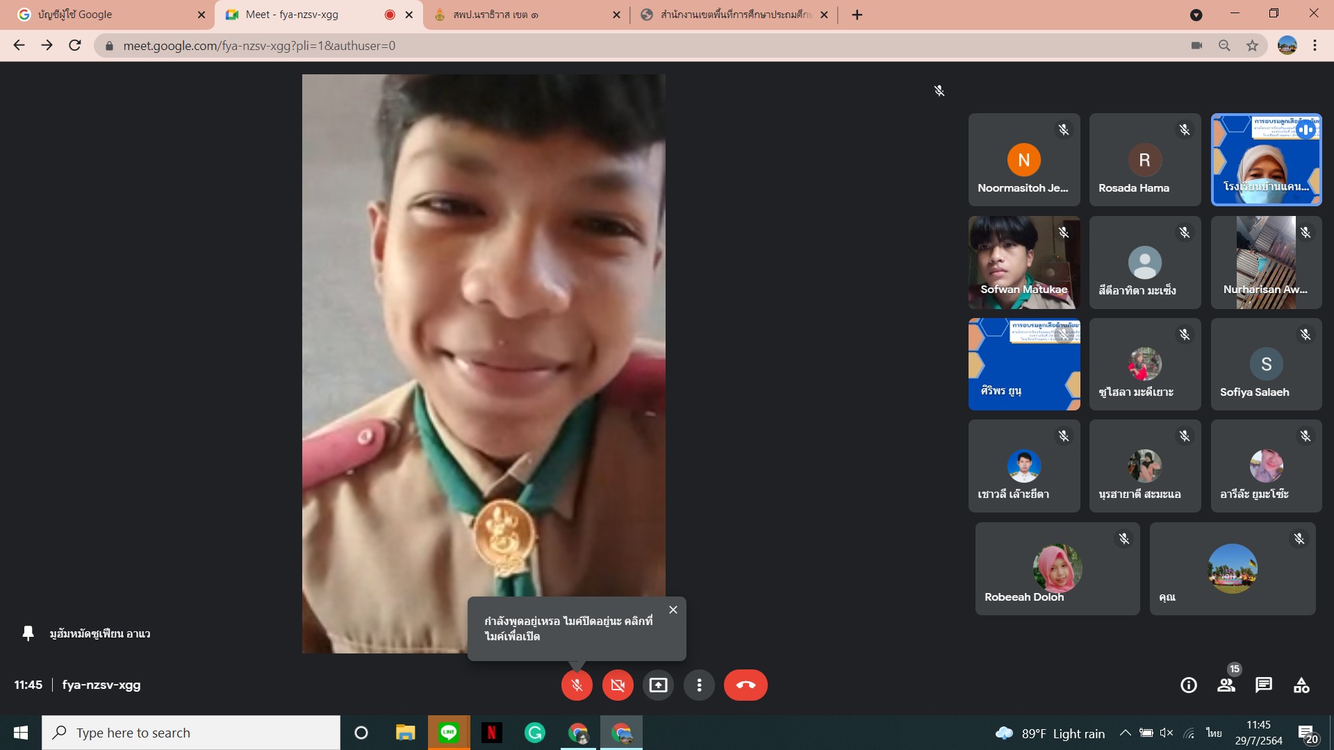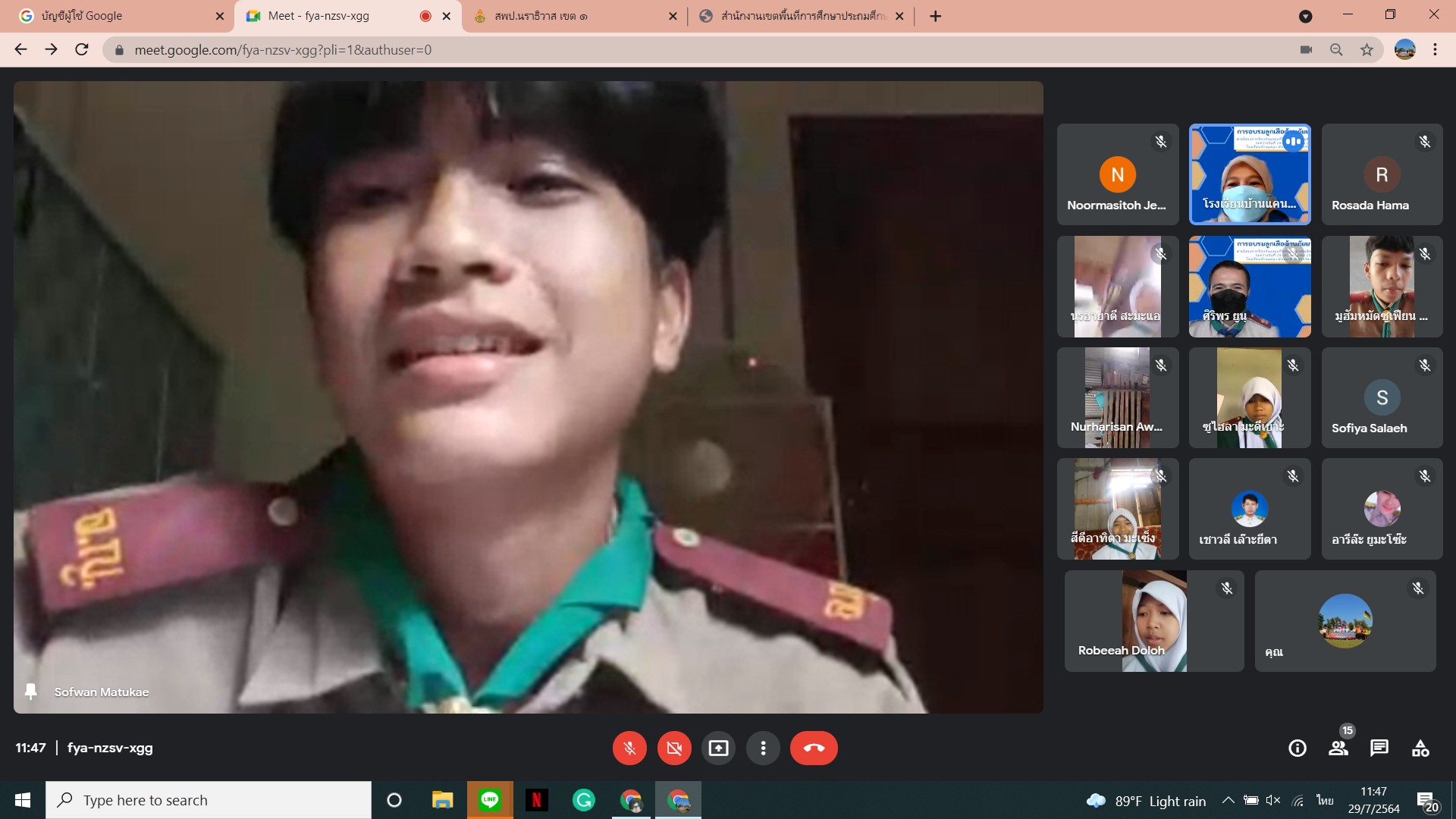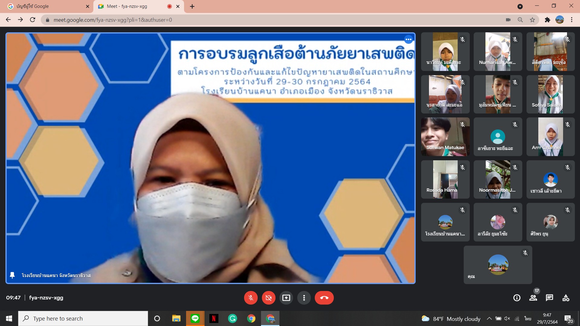 นายเชาวลี เล๊าะยีตา ผู้อำนวยการโรงเรียนบ้านแคนา พร้อมคณะครูโรงเรียนบ้านแคนา ดำเนินการจัดกิจกรรมอบรมลูกเสือต้านยาเสพติด ประจำปีการศึกษา ๒๕๖๔ ให้กับนักเรียนชั้นมัธยมศึกษาตอนต้น จำนวน ๘ คน ผ่านระบบ Google meet โดยถ่ายทอดสัญญาณจากห้องประชุมโรงเรียนบ้านแคนา ต.บางปอ อ.เมืองฯ จ.นราธิวาส ระหว่างวันที่ ๒๙ - ๓๐ กรกฎาคม ๒๕๖๔