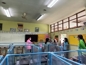ในวันที่ 14 ธันวาคม 2564 นายวันชัย ปานสาลี รอง ผอ.สพป.นราธิวาส เขต 1 พร้อมด้วย นางสาวสุนีย์ เจ๊ะกะบาซอ นักวิชาการสาธารณสุขชำนาญการ, นางสาวรุจิเรข หนูรัตน์ ผอ.รพ.สต.บ้านป่าไผ่, นายสมชาย แก้วเขียว กำนันตำบลกาหลง, นายซอฟวาน ยูโซะ ผู้ใหญ่บ้านป่าไผ่ เจ้าหน้าที่ สสอ.ศรีสาคร ได้มาติดตามประเมินความพร้อมในการเปิดเรียนแบบ ON-Site ภาคเรียนที่ 2 ปีการศึกษา 2564 ณ โรงเรียนบ้านป่าไผ่ อำเภอศรีสาคร จังหวัดนราธิวาส บันทึกข้อมูลเมื่อ 14-12-2564