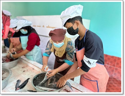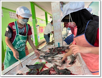เมื่อวันพุธที่ ๒๒ ธันวาคม ๒๕๖๔ นางสาวนงนุช กั้งยอด ผู้อำนวยการโรงเรียนบ้านเปล มอบหมายคุณครูมูซอฟฟัร สามะ ครูที่ปรึกษากิจกรรมยุวเกษตรกร และนักเรียนที่เป็นสมาชิกกลุ่มยุวเกษตรกร ผู้เลี้ยงปลาดุกในบ่อซีเมนต์ ต้อนรับคณะเจ้าหน้าที่จากสำนักงานประมงอำเภอเมืองนราธิวาสและวิทยากรอบรมการแปรรูปผลผลิตสัตว์น้ำ ซึ่งทางได้รับมอบหมายนายเรวัตร คงประดิษฐ์ ประมงจังหวัดนราธิวาส ให้กลุ่มพัฒนาและส่งเสริมอาชีพฯ สำนักงานประมงจังหวัดนราธิวาส และสำนักงานประมงอำเภอเมืองนราธิวาส ร่วมจัดฝึกอบรมสาธิตการแปรรูปผลผลิตสัตว์น้ำ เรื่อง การแปรรูปปลาดุกร้า ปลาดุกแดดเดียว ของโรงเรียนที่เข้าร่วมโครงการส่งเสริมการดำเนินงานอันเนื่องมาจากพระราชดำริฯ กิจกรรมสนับสนุนโครงการพัฒนาอันเนื่องมาจากพระราชดำริ สมเด็จพระกนิษฐาธิราชเจ้า กรมสมเด็จพระเทพรัตนราชสุดา ฯ สยามบรมราชกุมารี โดยทางโรงเรียนได้คัดเลือกนักเรียนสมาชิกกลุ่มยุวเกษตรกรผู้เลี้ยงปลาดุกในบ่อซีเมนต์ของโรงเรียนบ้านเปลเข้าร่วมการอบรม จำนวน ๑๒ คน จัดกิจกรรม ณ ลานกิจกรรมโรงเรียนบ้านเปล โดยผลการดำเนินกิจกรรมเป็นไปด้วยความเรียบร้อย ทางผู้บริหาร คณะครูที่ปรึกษากลุ่มยุวเกษตรกร และนักเรียนสมาชิกกลุ่มยุวเกษตรกรผู้เลี้ยงปลาดุกในบ่อซีเมนต์ทุกคน ต้องขอขอบคุณทางท่านประมงจังหวัดนราธิวาส เจ้าหน้าที่กลุ่มพัฒนาและส่งเสริมอาชีพฯ สำนักงานประมงจังหวัดนราธิวาส และสำนักงานประมงอำเภอเมืองนราธิวาสทุกท่าน ไว้ ณ โอกาสนี้ ทางนักเรียนสมาชิกกลุ่มยุวเกษตรกรผู้เลี้ยงปลาดุกในบ่อซีเมนต์ทุกคน จะนำความรู้และประสบการณ์ในการอบรมครั้งนี้ไปประยุกต์ใช้ให้เกิดประโยชน์สูงสุด เพื่อสร้างมูลค่าเพิ่มผลผลิตประมง กิจกรรมการเลี้ยงปลาดุกในบ่อซีเมนต์ของโรงเรียนบ้านเปลต่อไป บันทึกข้อมูลเมื่อ 03-01-2565