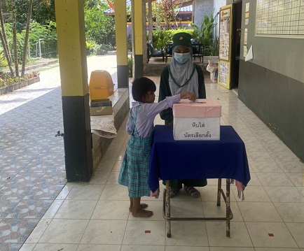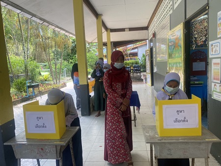 เมื่อวันที่ 9 เดือน กุมภาพันธ์ 2565 ผู้อำนวยการโรงเรียน นายซอลาฮุดดีน มาน๊ะ พร้อมด้วยคณะครู และบุคลากรสถานศึกษาได้จัดกิจกรรมเลือกตั้งประธานสภานักเรียนและเป็นที่ปรึกษาให้กับนักเรียนบรรยากาศเป็นไปด้วยความราบรื่นการดำเนินการเป็นไปด้วยความเรียบร้อยและสำเร็จลุล่วงไปด้วยดี
