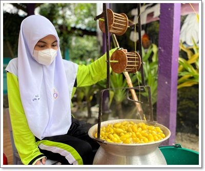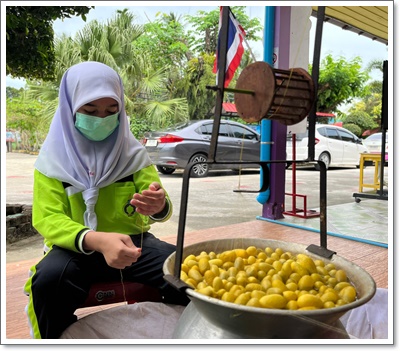 นางสาวนงนุช กั้งยอด ผู้อำนวยการโรงเรียนบ้านเปล มอบหมายให้คุณครูนัทฐิรา แก้วมณี นำเด็กหญิงนูรีซัน สุหลง นักเรียนชั้นประถมศึกษาปีที่ ๕ และเด็กหญิง ซูรูลฟาย์ สือนินักเรียนชั้นประถมศึกษาปีที่ ๖ ซึ่งเป็นตัวแทนนักเรียน ระดับภาคใต้ เข้าแข่งขันสาวไหม ระดับชั้นประถมศึกษา ในงาน"เทิดไท้ ๙๐ พรรษา พระมารดาแห่งไหมไทย" สืบสานพระราชปณิธาน สมเด็จพระนางเจ้าสิริกิติ์ พระบรมราชินีนาถ พระบรมราชชนนีพันปีหลวง การจัดงานครั้งนี้ จัดขึ้นระหว่างวันที่ ๑๒ ๒๑ มิถุนายน ๒๕๖๕ ณ สวนเฉลิมพระเกียรติ พระบาทสมเด็จพระเจ้าอยู่หัว เฉลิมพระชนมพรรษา ๘๐ พรรษา ริมฝั่งหนองหาร ตำบลธาตุเชิงชุม อำเภอเมืองสกลนคร จังหวัดสกลนคร กิจกรรมการแข่งขันสาวไหม จัดขึ้นเมื่อวันที่ ๑๖ มิถุนายน ๒๕๖๕ โดยได้รับเกียรติ จาก ดร.เฉลิมชัย ศรีอ่อน รัฐมนตรีว่าการกระทรวงเกษตรและสหกรณ์ เป็นประธานเปิดกิจกรรม "ประกวดเส้นไหม ผ้าไหม ผลิตภัณฑ์จากหม่อน และส่งเสริมตลาดผ้าไหม ประจำปี ๒๕๖๕ " ภายใต้งาน เทิดไท้ ๙๐ พรรษา พระมารดาแห่งไหมไทย โดยการจัดงานในครั้งนี้เป็นส่วนหนึ่งในกิจกรรมเฉลิมพระเกียรติฯ ที่กรมหม่อนไหมร่วมกับ ๓ หน่วยงาน