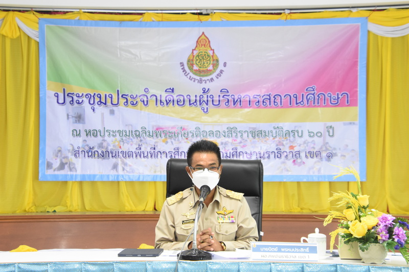 27 ÁԶعÒ¹ 2565 àÇÅÒ 08.30 ¹. ¹Ò¹ԵÂì ¾ÃËÁ»ÃÐÊÔ·¸Ôì ¼Í.ʾ».¹ÃÒ¸ÔÇÒÊ à¢µ 1 à»ç¹»Ãиҹ»ÃЪØÁ»ÃШÓà´×͹¼ÙéºÃÔËÒÃʶҹÈÖ¡ÉÒ ¤ÃÑé§·Õè 4/2565 ¾ÃéÍÁ´éÇÂÃͧ ¼Í.ʾ».¹ÃÒ¸ÔÇÒÊ à¢µ 1 ,¼ÙéÍӹǡÒÃ¡ÅØèÁ áÅÐÈÖ¡ÉÒ¹Ôà·È¡ì à¾×èÍá¨é§¢éÍÃÒª¡ÒÃãËé¼ÙéºÃÔËÒÃʶҹÈÖ¡ÉÒä´éÃѺ·ÃÒº ³ ËÍ»ÃЪØÁà©ÅÔÁ¾ÃÐà¡ÕÂõԩÅͧÊÔÃÔÃÒªÊÁºÑµÔ¤Ãº 60 »Õ ʾ».¹ÃÒ¸ÔÇÒÊ à¢µ 1