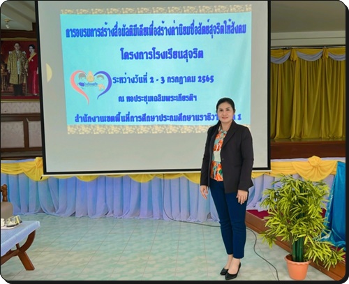 Çѹ·Õè 2 – 3 ¡Ã¡®Ò¤Á 2565 ¹Ò§ÊÒǸԴÒÃѵ¹ì ÅÑ¡¢Éà ¼ÙéÍӹǡÒÃâçàÃÕ¹ºéÒ¹ËÑÇà¢Ò ¾ÃéÍÁ´éǹҧÊÒǨÒÃÕÇÃó ¢Çѷͧ ¸ØÃ¡ÒÃâçàÃÕ¹ ä´éà¢éÒÃèÇÁͺÃÁ¡ÒÃÊÃéÒ§Ê×èÍÁÑŵÔÁÕà´ÕÂà¾×èÍÊÃéÒ§¤èÒ¹ÔÂÁ«×èÍÊѵÂìÊØ¨ÃÔµãËéÊѧ¤Á â¤Ã§¡ÒÃàÊÃÔÁÊÃéÒ§¤Ø³¸ÃÃÁ ¨ÃÔ¸ÃÃÁáÅиÃÃÁÒÀÔºÒÅã¹Ê¶Ò¹ÈÖ¡ÉÒ “»éͧ¡Ñ¹¡Ò÷بÃÔµ” (â¤Ã§¡ÒÃâçàÃÕÂ¹ÊØ¨ÃÔµ) ³ ËÍ»ÃЪØÁà©ÅÔÁ¾ÃÐà¡ÕÂõԩÅͧÊÔÃÔÃÒªÊÁºÑµÔ ¤Ãº öð »Õ Êӹѡ§Ò¹à¢µ¾×é¹·Õè¡ÒÃÈÖ¡ÉÒ»ÃжÁÈÖ¡ÉÒ¹ÃÒ¸ÔÇÒÊ à¢µ 1