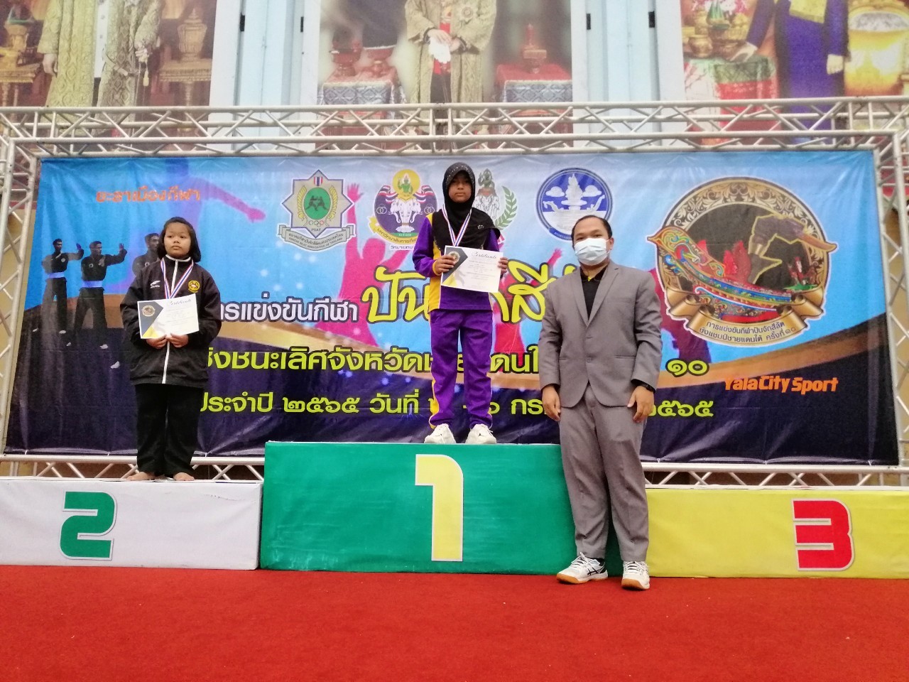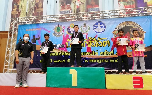 นายมุขตาร์ มิง ผอ.รร. นายไพซ็อลล์ บาและ และนางสาวซารีนา เจ๊ะเงาะ ได้นำนักกีฬาเข้าร่วมแข่งขันกีฬาปันจักสีลัตชิงชนะเลิศจังหวัดชายแดนภาคใต้ ครั้งที่10 ระหว่างวันที่ 2-6 กรกฎาคม 2565 ณ มหาวิทยาลัยการกีฬาแห่งชาติ วิทยาเขต ยะลา สรุปผลการแข่งขัน 6 เหรียญทอง 3 เหรียญเงิน 2 เหรียญทองแดง รวมเหรียญรางวัล 11 เหรียญ และได้ถ้วยรางวัล 2 ถ้วยรางวัล คือ ถ้วยรางวัลผู้ฝึกสอนดีเด่นและถ้วยรางวัลรวมรุ่นอายุ 10-12 ปี ขอแสดงความยินดีกับนักกีฬาและผู้ฝึกสอนมา ณ โอกาสนี้ บันทึกข้อมูลเมื่อ 20-07-2565