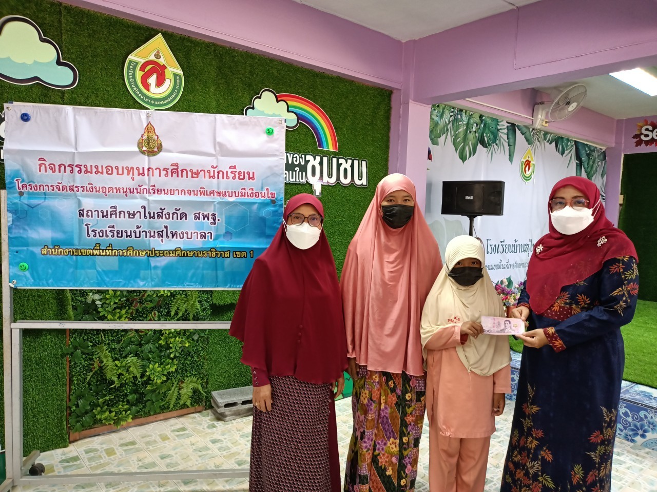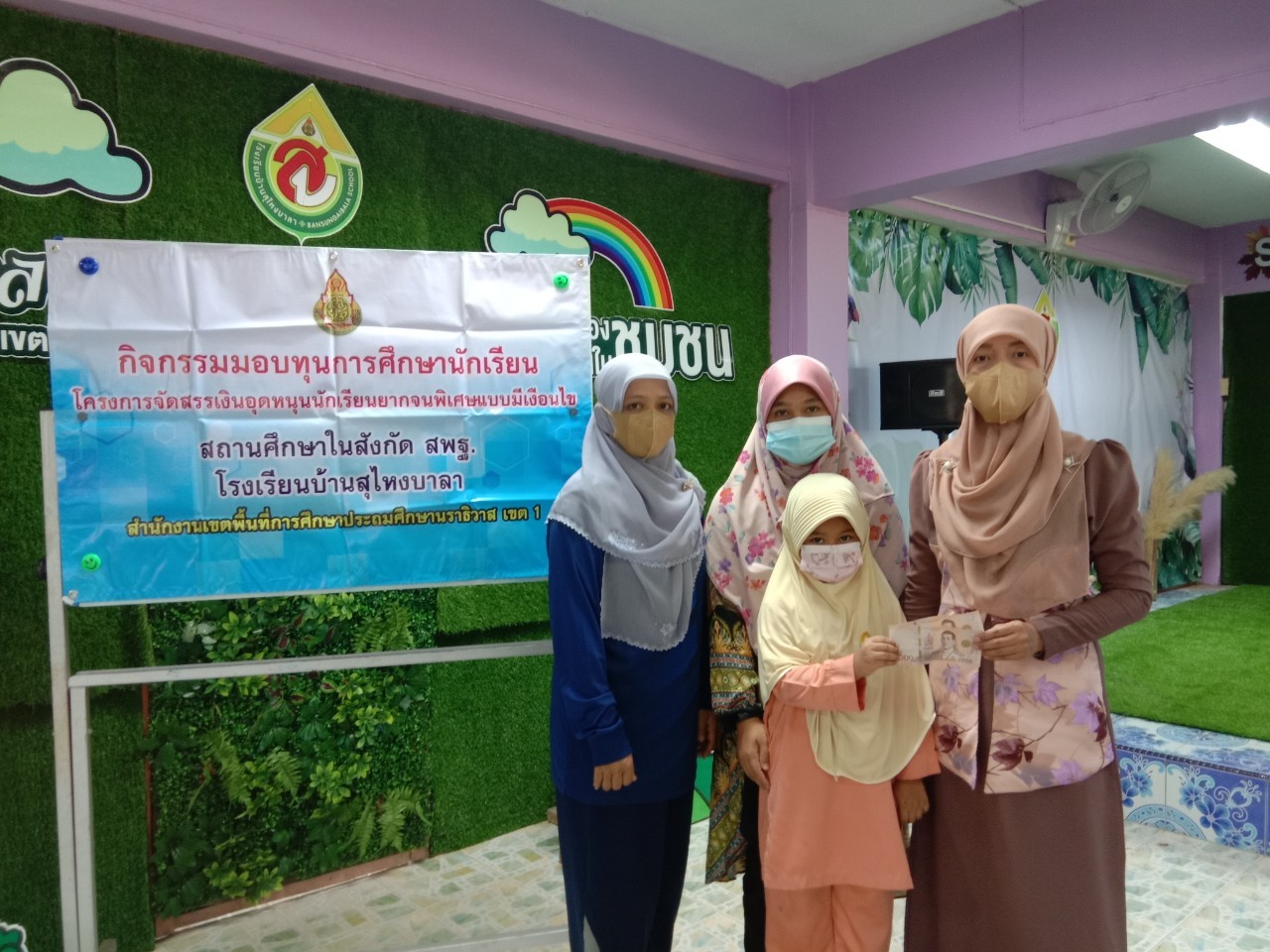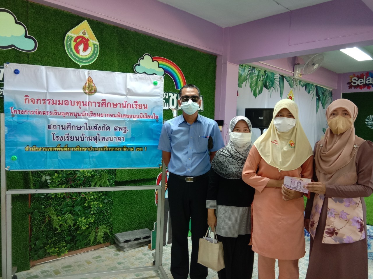โรงเรียนบ้านสุไหงบาลา (031) วันที่19 สิงหาคม 2565นางนอรีญา สะลิมิง ผู้อำนวยการ โรงเรียนบ้านสุไหงบาลา และคณะครู ได้ดำเนินการมอบทุนการศึกษาปัจจัยพื้นฐานนักเรียนยากจนพิเศษแบบมีเงื่อนไข (นักเรียนทุนเสมอภาค) ประจำปี 2565 ให้กับนักเรียนที่ได้รับทุนการศึกษา จำนวน 115 คน ณ โรงเรียนบ้านสุไหงบาลา ซึ่งการดำเนินการเป็นด้วยความเรียบร้อย