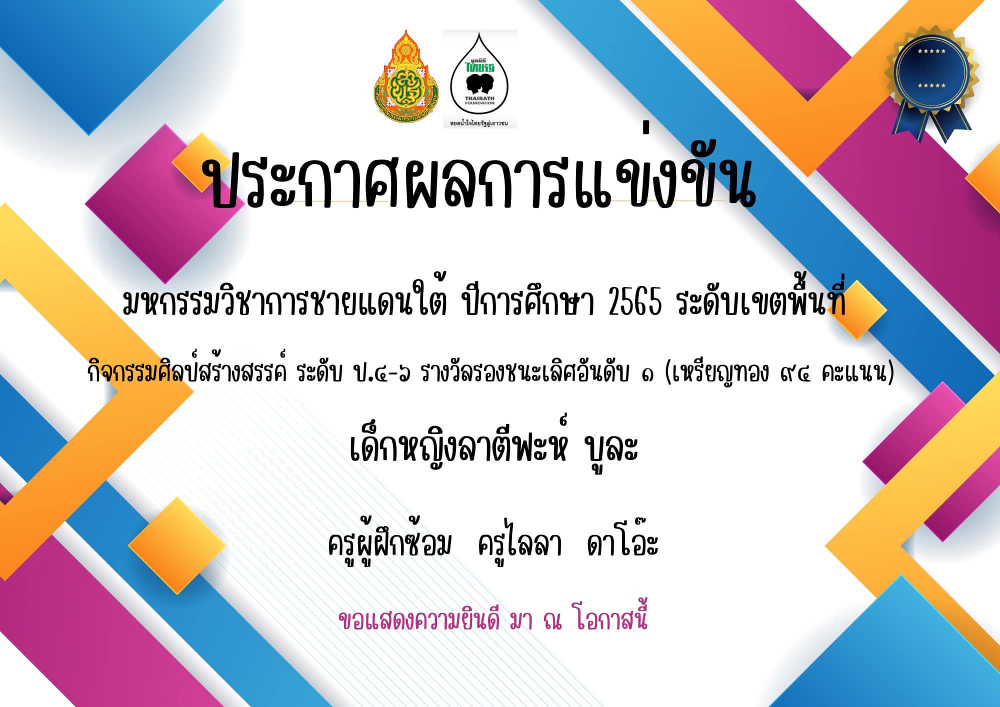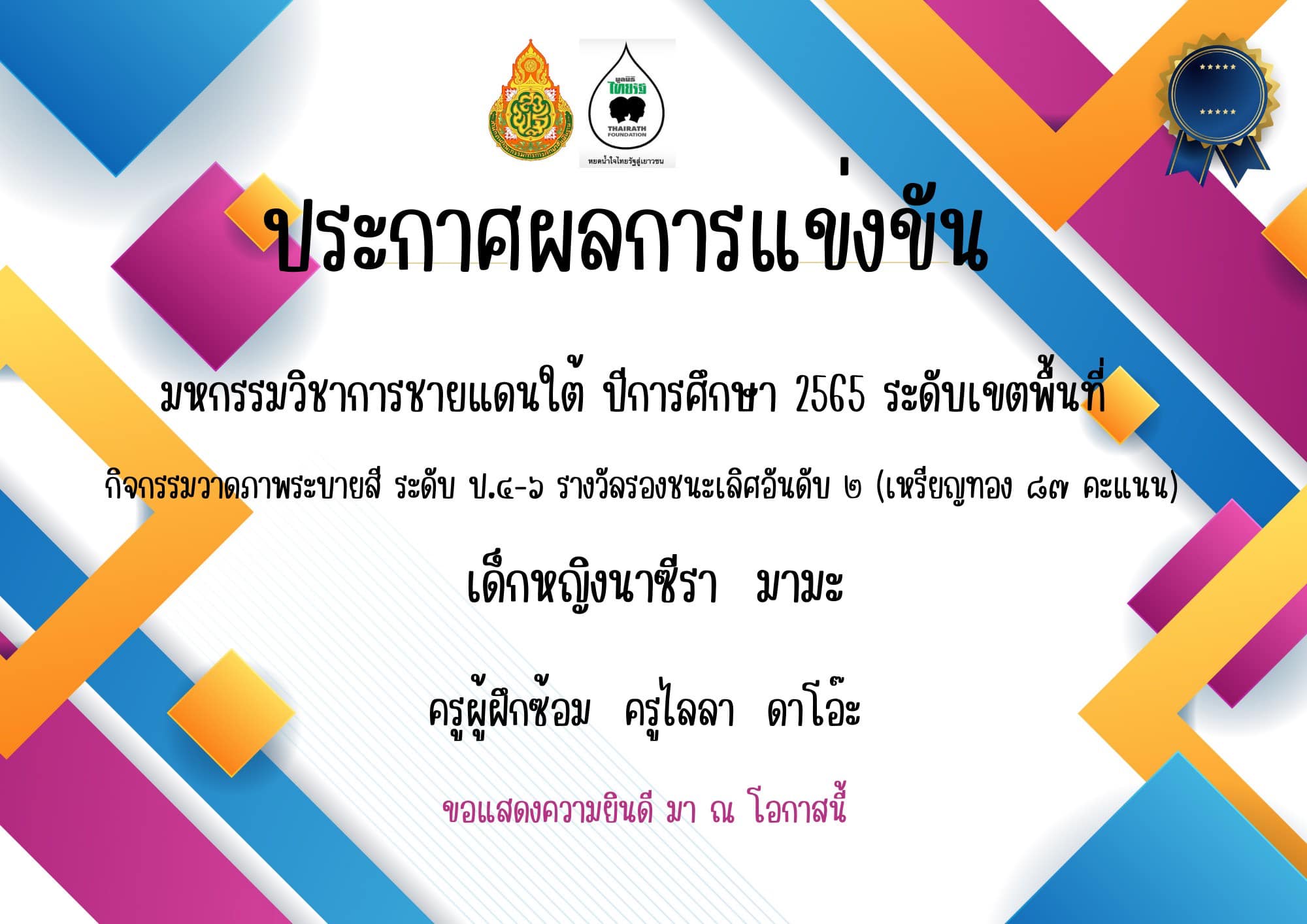 Çѹ·Õè ò ¡Ñ¹ÂÒ¹ òõöõ âçàÃÕ¹ä·ÂÃѰÇÔ·ÂÒ ñð (ºéÒ¹ãËÁè) ÍÓàÀÍàÁ×ͧ¹ÃÒ¸ÔÇÒÊ ¨Ñ§ËÇÑ´¹ÃÒ¸ÔÇÒÊ ä´éà¢éÒÃèÇÁ¡Ô¨¡ÃÃÁ¡ÒÃá¢è§¢Ñ¹ÁË¡ÃÃÁÇÔªÒ¡ÒêÒÂá´¹ãµé ÃдѺࢵ¾×é¹·Õè¡ÒÃÈÖ¡ÉÒ »ÃÐ¨Ó»Õ òõöõ â´Âä´éÃѺÃÒ§ÇÑÅÃͧª¹ÐàÅÔÈÍѹ´Ñº ñ àËÃÕ·ͧ 㹡Ԩ¡ÃÃÁÈÔÅ»ìÊÃéÒ§ÊÃäì ÃдѺªÑé¹»ÃжÁÈÖ¡ÉÒ ô-ö áÅÐÃÒ§ÇÑÅÃͧª¹ÐàÅÔÈÍѹ´Ñº ò àËÃÕ·ͧ 㹡Ԩ¡ÃÃÁÇÒ´ÀÒ¾ÃкÒÂÊÕ ÃдѺªÑé¹ »ÃжÁÈÖ¡ÉÒ ô-ö ³ ʹÒÁâçàÃÕ¹àÁ×ͧ¹ÃÒ¸ÔÇÒÊ ÍÓàÀÍàÁ×ͧ¹ÃÒ¸ÔÇÒÊ ¨Ñ§ËÇÑ´¹ÃÒ¸ÔÇÒÊ