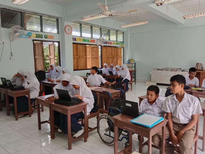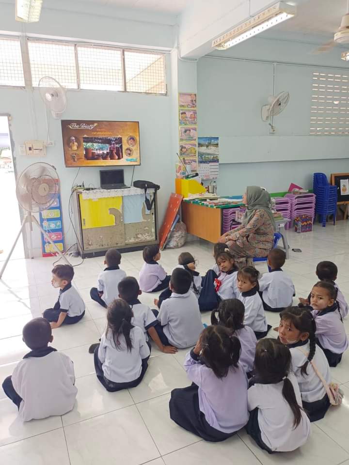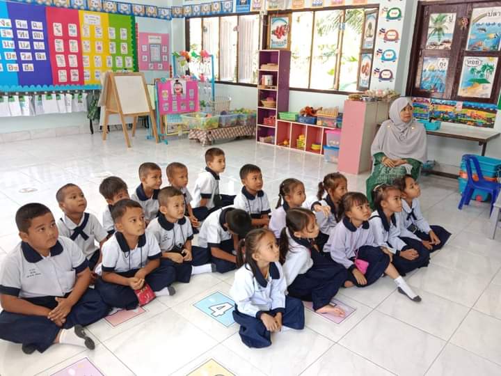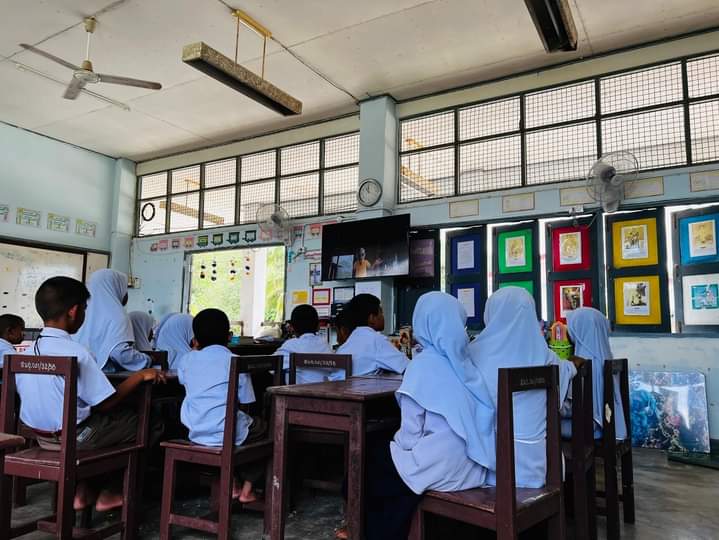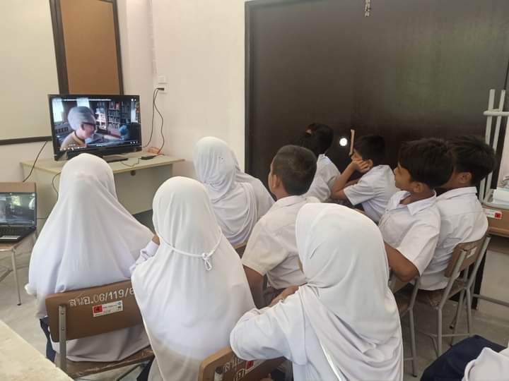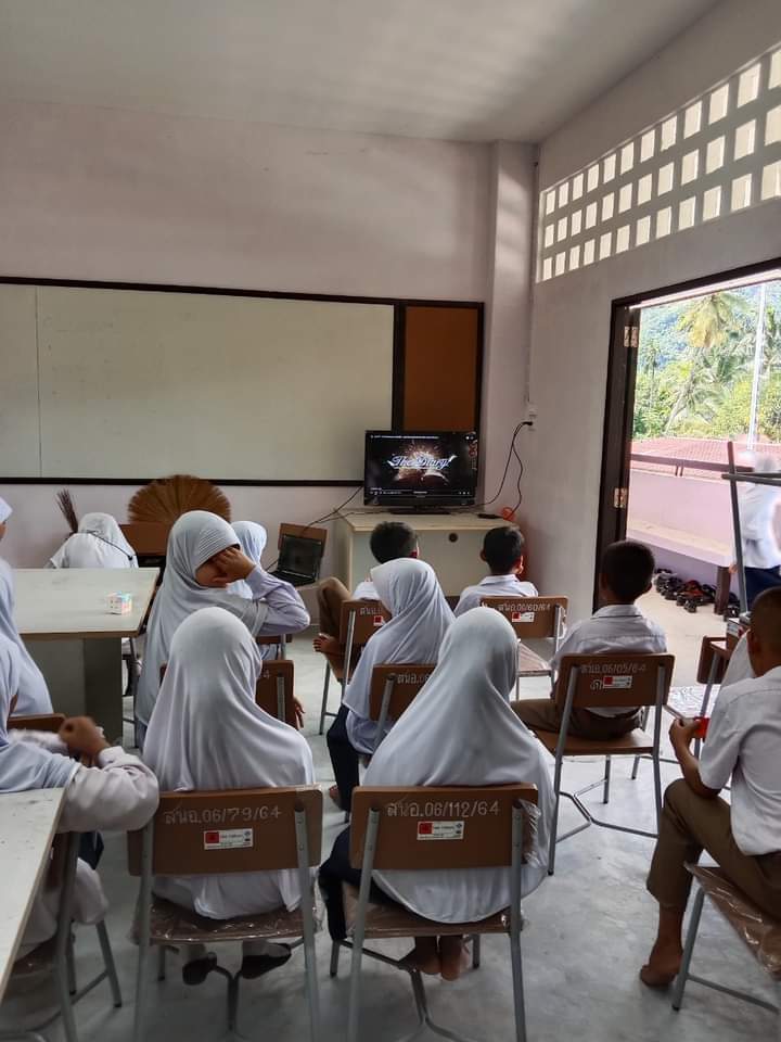 นายนริศ นิมอ ผู้อำนวยการโรงเรียนบ้านบลูกาสนอ มอบหมายครูประจำชั้นดำเนินการให้นักเรียนรับชม