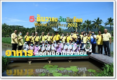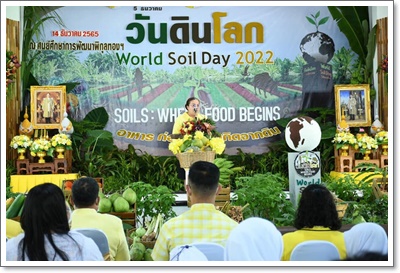 นางสายใจ มณีรัตน์ หัวหน้างานวิชาการและประสานงาน เป็นผู้กล่าวรายงาน การจัดงานในครั้งนี้ โดยภายในงาน ได้จัดให้มีกิจกรรมหลากหลายรูปแบบ ทั้งการจัดแสดง นิทรรศการวันดินโลก อาทิ ความเป็นมาวันดินโลก แนวพระราชดำริด้านดิน ความสำคัญของดินในบทบาทปัจจัยพื้นฐานการผลิต การสาธิตการ ทำอาหารเพื่อสุขภาพ from farm to table อาทิ ข้าวยำ ส้มตำ และน้ำ สมุนไพรพร้อมทั้งนำชม การบริหารจัดการที่ดินเพื่อใช้ประโยชน์ ทางการ เกษตร ณ แปลงสาธิตการ ทำเกษตรทฤษฎีใหม่ ในดินเปรี้ยวจัด และการ จำหน่ายผลผลิตทางการเกษตร ปลอดภัยจากสารพิษ ในการนี้ มีหัวหน้า ส่วนราชการ หน่วยงานที่เกี่ยวข้อง เกษตรกร สถานศึกษาต่างๆ ร่วมงานใน ครั้งนี้ด้วย