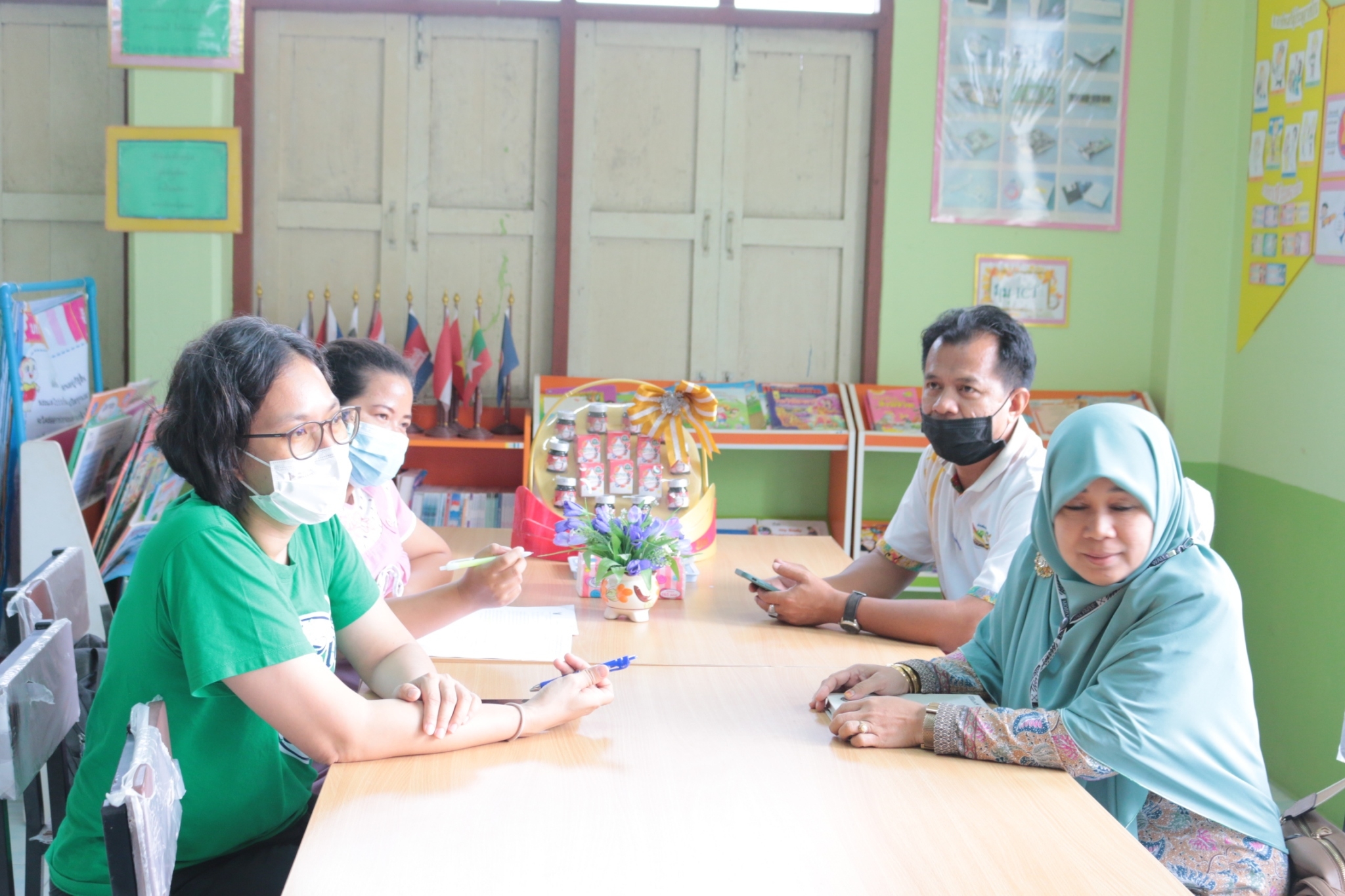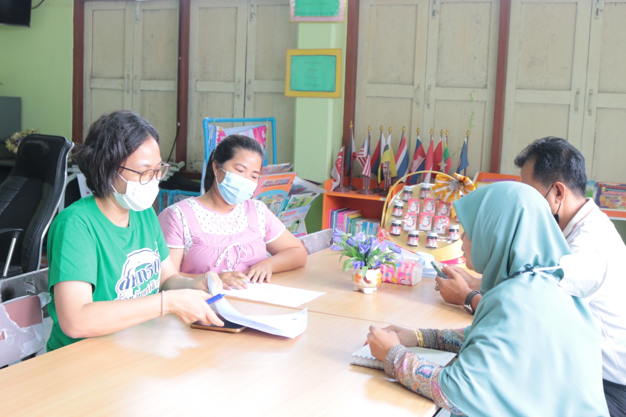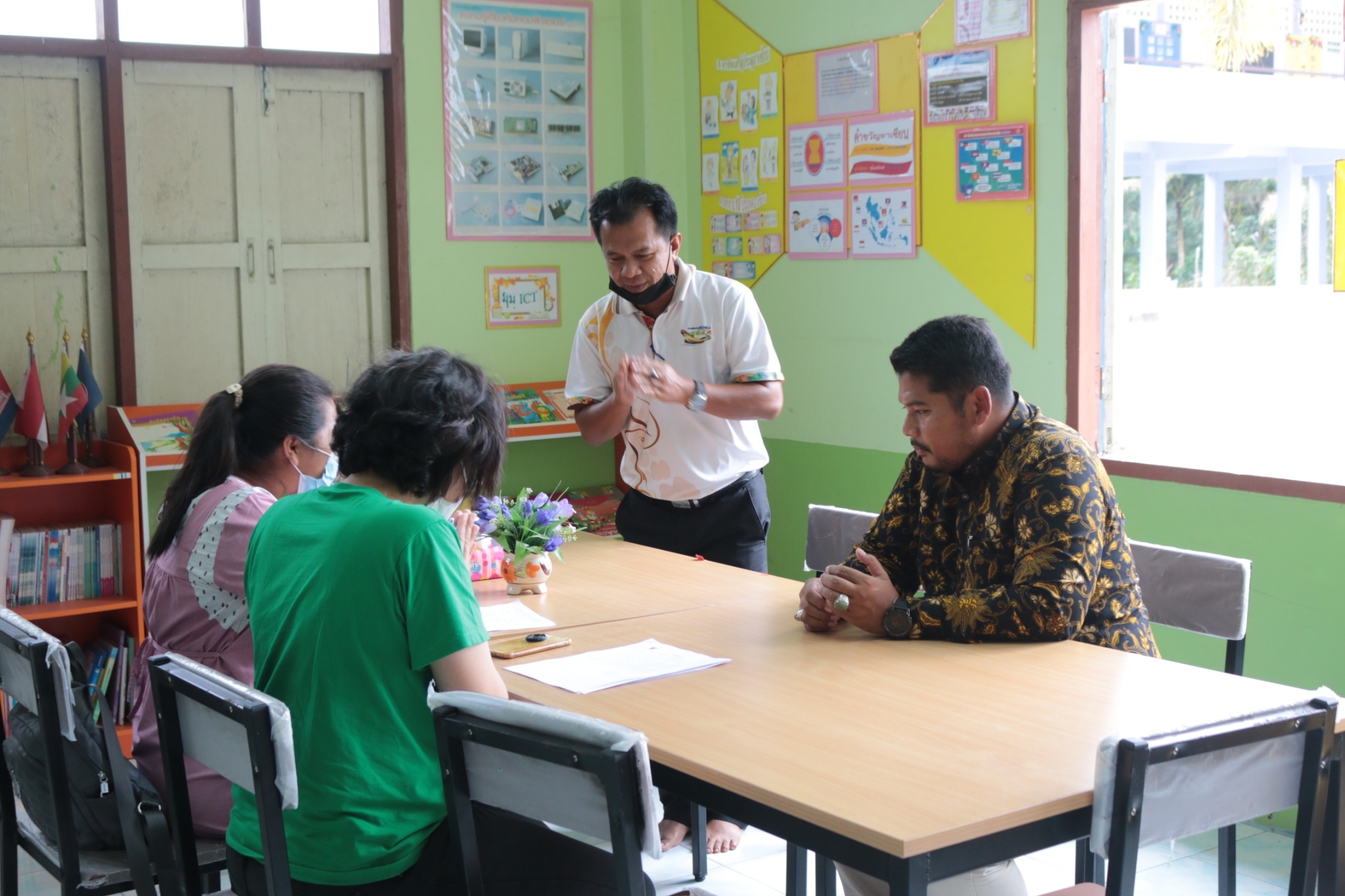 ผู้อำนวยการโรงเรียนบ้านบลูกาสนอ พร้อมด้วยครูมะรอมิง ซาลีซิงและครูไลลา อัตนิ ได้ต้อนรับเจ้าหน้าที่จากสหกรณ์