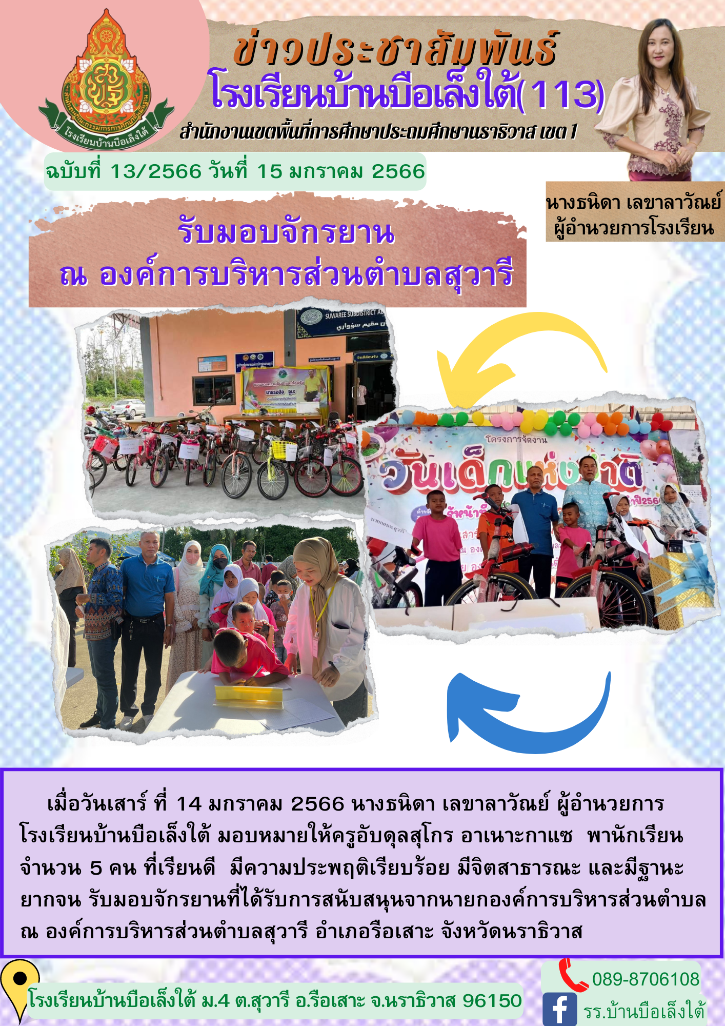 ÇѹàÊÒÃì ·Õè 14 Á¡ÃÒ¤Á 2566 ¹Ò§¸¹Ô´Ò àÅ¢ÒÅÒÇѳÂì ¼ÙéÍӹǡÒÃâçàÃÕ¹ºéÒ¹º×ÍàÅç§ãµé ÁͺËÁÒÂãËé¤ÃÙÍѺ´ØÅÊØâ¡Ã ÍÒà¹ÒСÒá« ¾Ò¹Ñ¡àÃÕ¹ ¨Ó¹Ç¹ 5 ¤¹ ·ÕèàÃÕ¹´Õ ÁÕ¤ÇÒÁ»ÃоĵÔàÃÕºÃéÍ ÁÕ¨ÔµÊÒ¸ÒóРáÅÐÁÕ°Ò¹ÐÂÒ¡¨¹ ÃѺÁͺ¨Ñ¡ÃÂÒ¹·Õèä´éÃѺ¡ÒÃʹѺʹع¨Ò¡¹Ò¡ͧ¤ì¡ÒúÃÔËÒÃÊèǹµÓºÅ ³ ͧ¤ì¡ÒúÃÔËÒÃÊèǹµÓºÅÊØÇÒÃÕ ÍÓàÀÍÃ×ÍàÊÒÐ ¨Ñ§ËÇÑ´¹ÃÒ¸ÔÇÒÊ ºÑ¹·Ö¡¢éÍÁÙÅàÁ×èÍ 15-01-2566