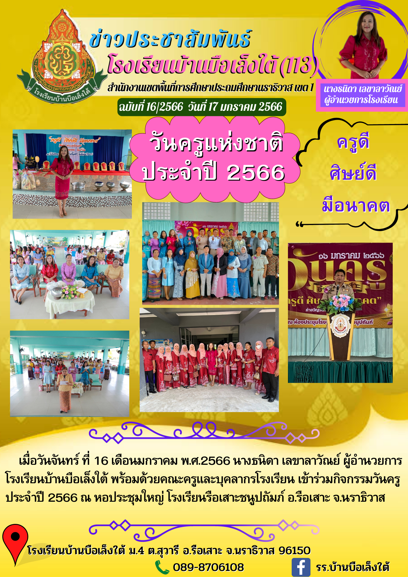 àÁ×èÍÇѹ¨Ñ¹·Ãì ·Õè 16 à´×͹Á¡ÃÒ¤Á ¾.È.2566 ¹Ò§¸¹Ô´Ò àÅ¢ÒÅÒÇѳÂì ¼ÙéÍӹǡÒÃâçàÃÕ¹ºéÒ¹º×ÍàÅç§ãµé ¾ÃéÍÁ´éǤ³Ð¤ÃÙáÅкؤÅÒ¡ÃâçàÃÕ¹ à¢éÒÃèÇÁ¡Ô¨¡ÃÃÁÇѹ¤ÃÙ »ÃÐ¨Ó»Õ 2566 ³ ËÍ»ÃЪØÁãËè âçàÃÕ¹Ã×ÍàÊÒЪ¹Ù»¶ÑÁÀì ÍÓàÀÍÃ×ÍàÊÒÐ ¨Ñ§ËÇÑ´¹ÃÒ¸ÔÇÒÊ ºÑ¹·Ö¡¢éÍÁÙÅàÁ×èÍ 17-01-2566