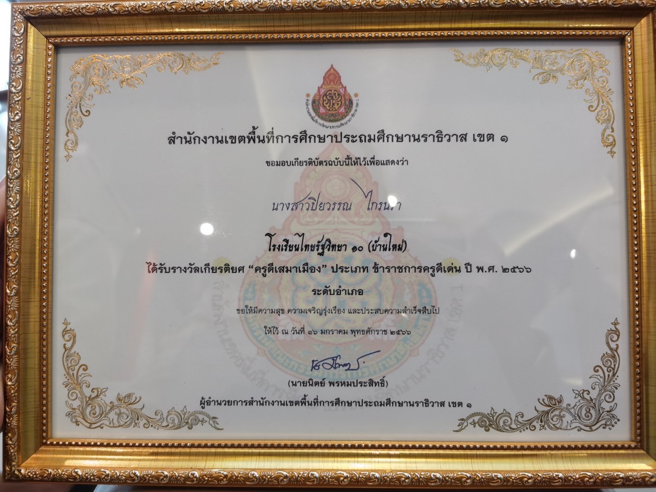 Çѹ¨Ñ¹·Ãì ·Õè ñö à´×͹Á¡ÃÒ¤Á ¾.È.òõöö ¹Ò§ÊÒÇ»ÔÂÇÃó ä¡Ã¹ÃÒ µÓáË¹è§ ¤ÃÙ ÇԷ°ҹР¤ÃÙªÓ¹Ò¡ÒþÔàÈÉ âçàÃÕ¹ä·ÂÃѰÇÔ·ÂÒ ñð (ºéÒ¹ãËÁè) ä´éÃѺÃÒ§ÇÑÅà¡ÕÂõÔÂÈ “¤ÃÙ´ÕàÊÁÒàÁ×ͧ” »ÃÐ¨Ó»Õ ¾.È.òõöö ³ ËÍ»ÃЪØÁ¡ÃШٴ ÇÔ·ÂÒÅѪØÁª¹ ÍÓàÀÍàÁ×ͧ¹ÃÒ¸ÔÇÒÊ ¨Ñ§ËÇÑ´¹ÃÒ¸ÔÇÒÊ