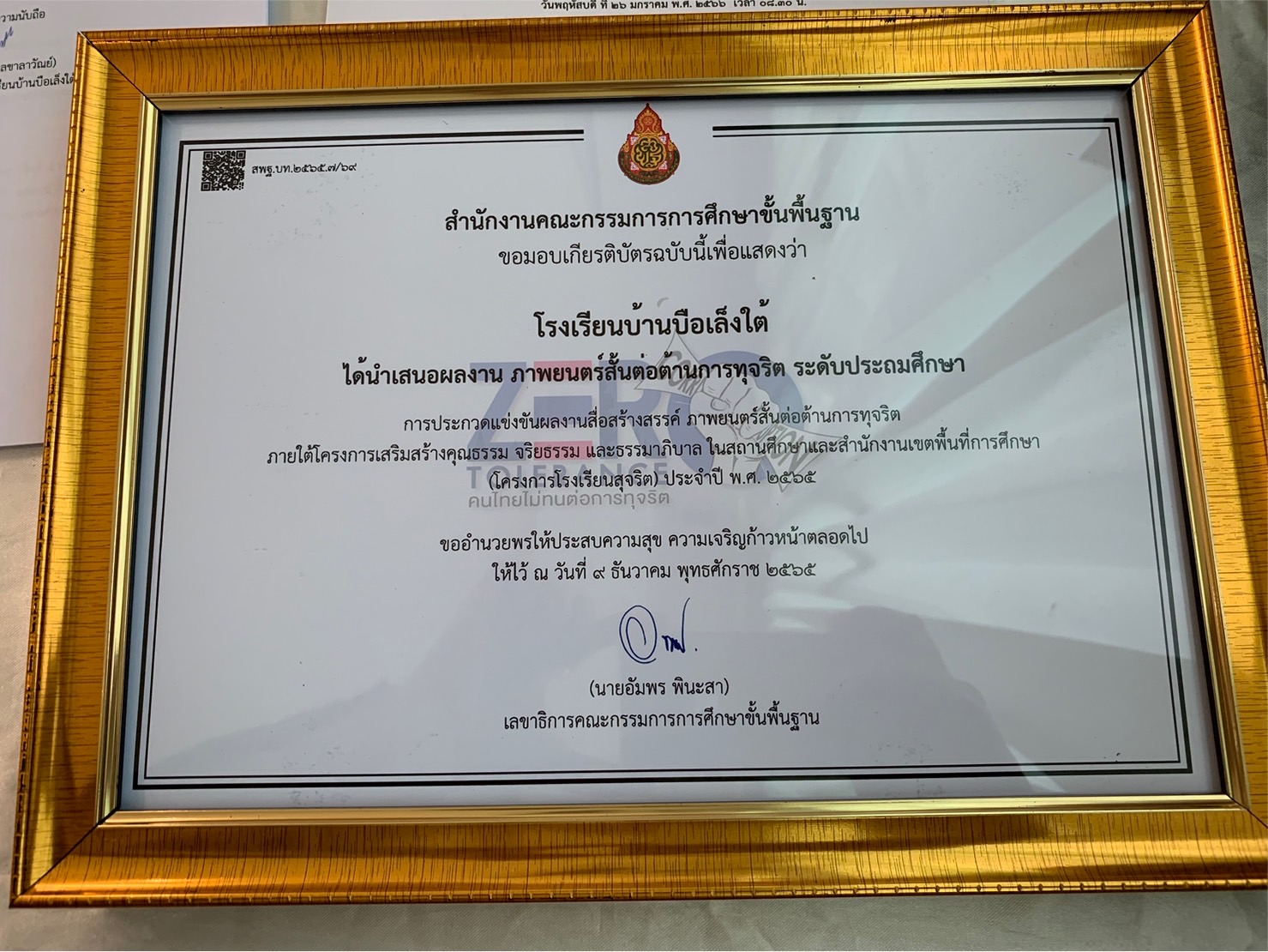 Çѹ¾ÄËÑʺ´Õ ·Õè 26 Á¡ÃÒ¤Á 2566 âçàÃÕ¹ºéÒ¹º×ÍàÅç§ãµé ä´éÃѺà¡ÕÂõԺѵà ·Õè¹ÓàʹͼŧҹÀҾ¹µÃìÊÑé¹µè͵éÒ¹¡Ò÷بÃÔµ ÃдѺ»ÃжÁÈÖ¡ÉÒ ¢Í§¡Ô¨¡ÃÃÁ¡ÒûÃСǴá¢è§¢Ñ¹¼Å§Ò¹Ê×èÍÊÃéÒ§ÊÃäì ÀҾ¹µÃìÊÑé¹µè͵éÒ¹¡Ò÷بÃÔµ ÀÒÂãµéâ¤Ã§¡ÒÃàÊÃÔÁÊÃéÒ§¤Ø³¸ÃÃÁ ¨ÃÔ¸ÃÃÁ áÅиÃÃÁÒÀÔºÒÅ ã¹Ê¶Ò¹ÈÖ¡ÉÒ áÅÐÊӹѡ§Ò¹à¢µ¾×é¹·Õè¡ÒÃÈÖ¡ÉÒ (â¤Ã§¡ÒÃâçàÃÕ¹·Ø¨ÃÔµ) »ÃШӻաÒÃÈÖ¡ÉÒ 2565 â´ÂÁÕ ¹Ò¹ԵÂì ¾ÃËÁ»ÃÐÊÔ·¸Ôì ¼Í.ʾ».¹ÃÒ¸ÔÇÒÊ à¢µ 1 à»ç¹¼ÙéÁͺà¡ÕÂõԺѵÃ㹤ÃÑé§¹Õé ³ ËÍ»ÃЪØÁà©ÅÔÁ¾ÃÐà¡ÕÂõԩÅͧÊÔÃÔÃÒªÊÁºÑµÔ ¤Ãº 60 »Õ ʾ».¹ÃÒ¸ÔÇÒÊ à¢µ 1 ºÑ¹·Ö¡¢éÍÁÙÅàÁ×èÍ 27-01-2566