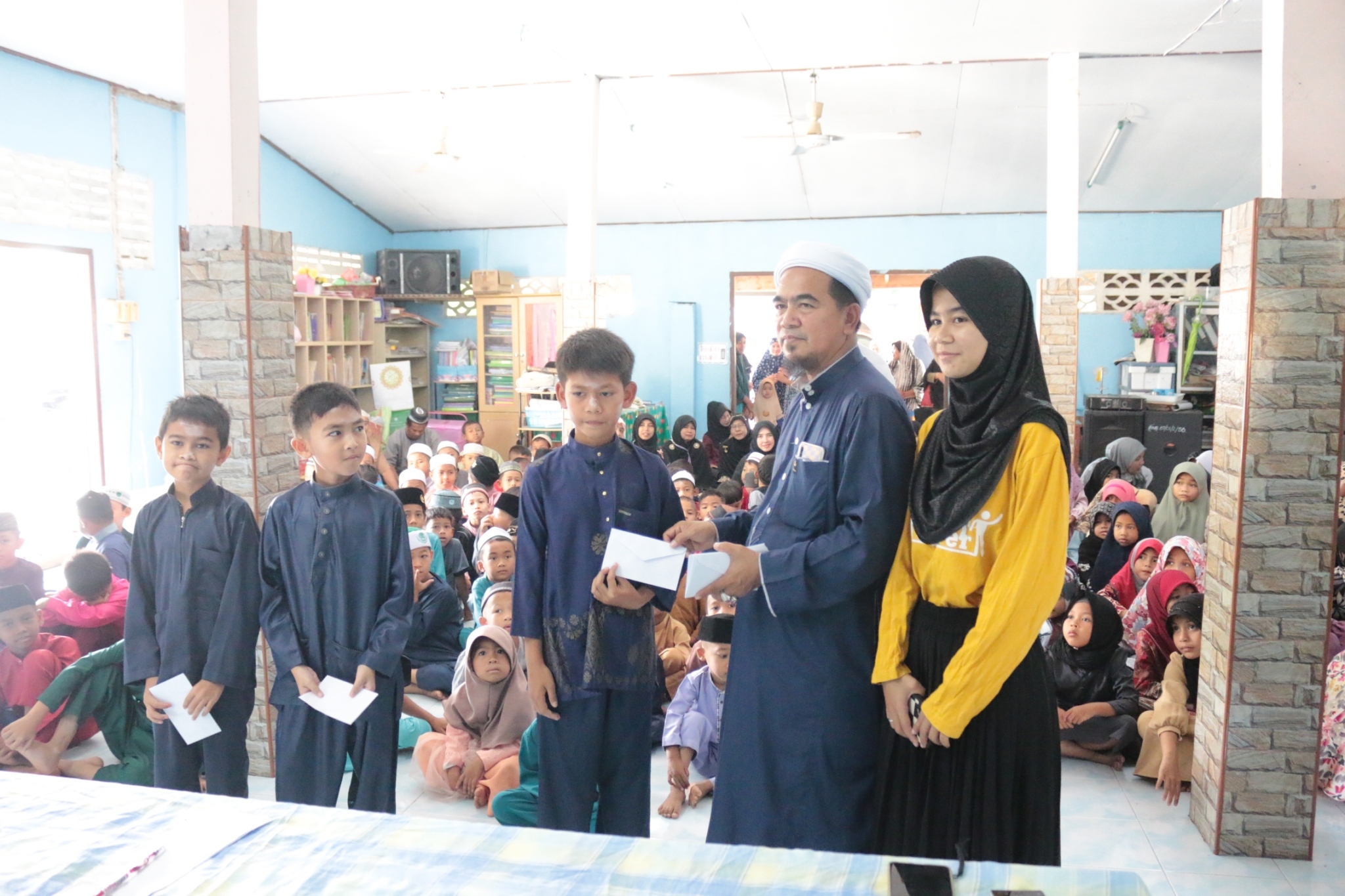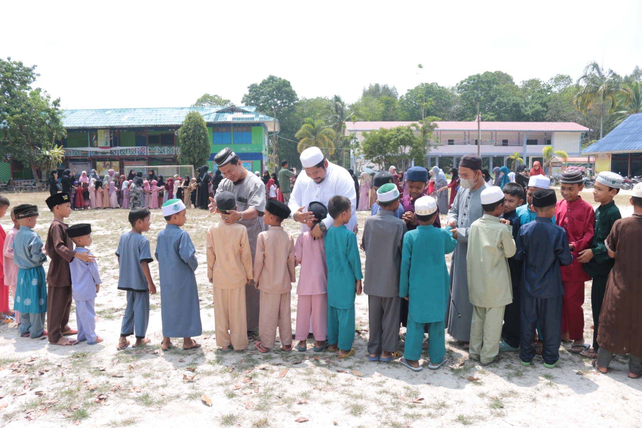 นายนริศ นิมอ ผู้อำนวยการโรงเรียนบ้านบลูกาสนอ และคณะครู ได้จัดกิจกรรมต้อนรับวันตรุษอิดีลฟิตรี โดยมีการมอบซากาตและทุนการศึกษาให้กับนักเรียนกำพร้าและยากจน