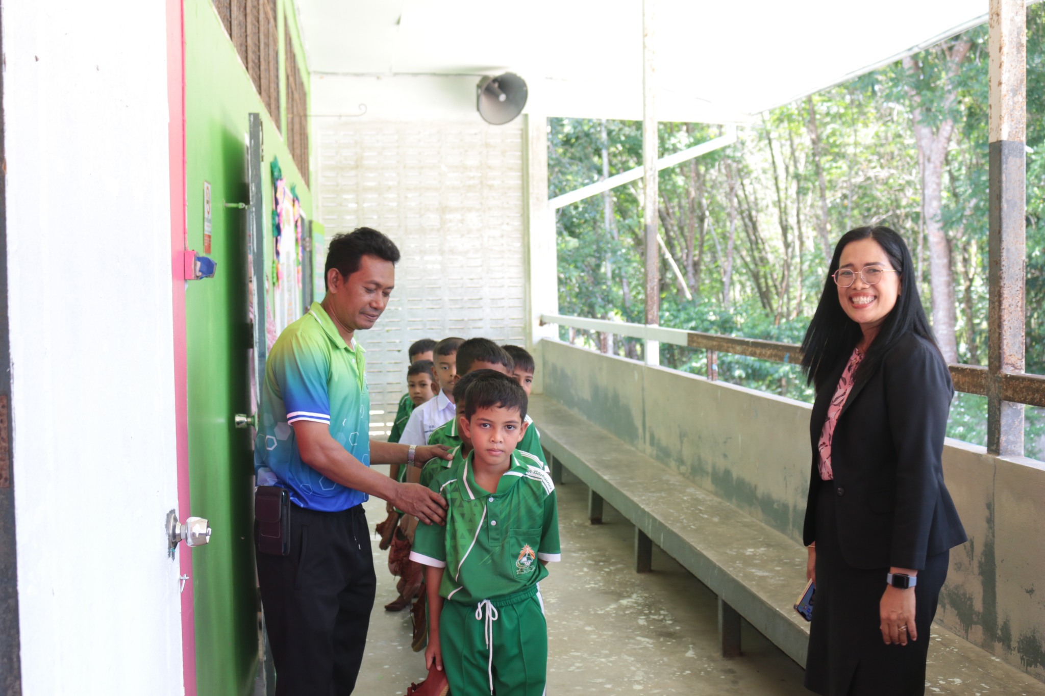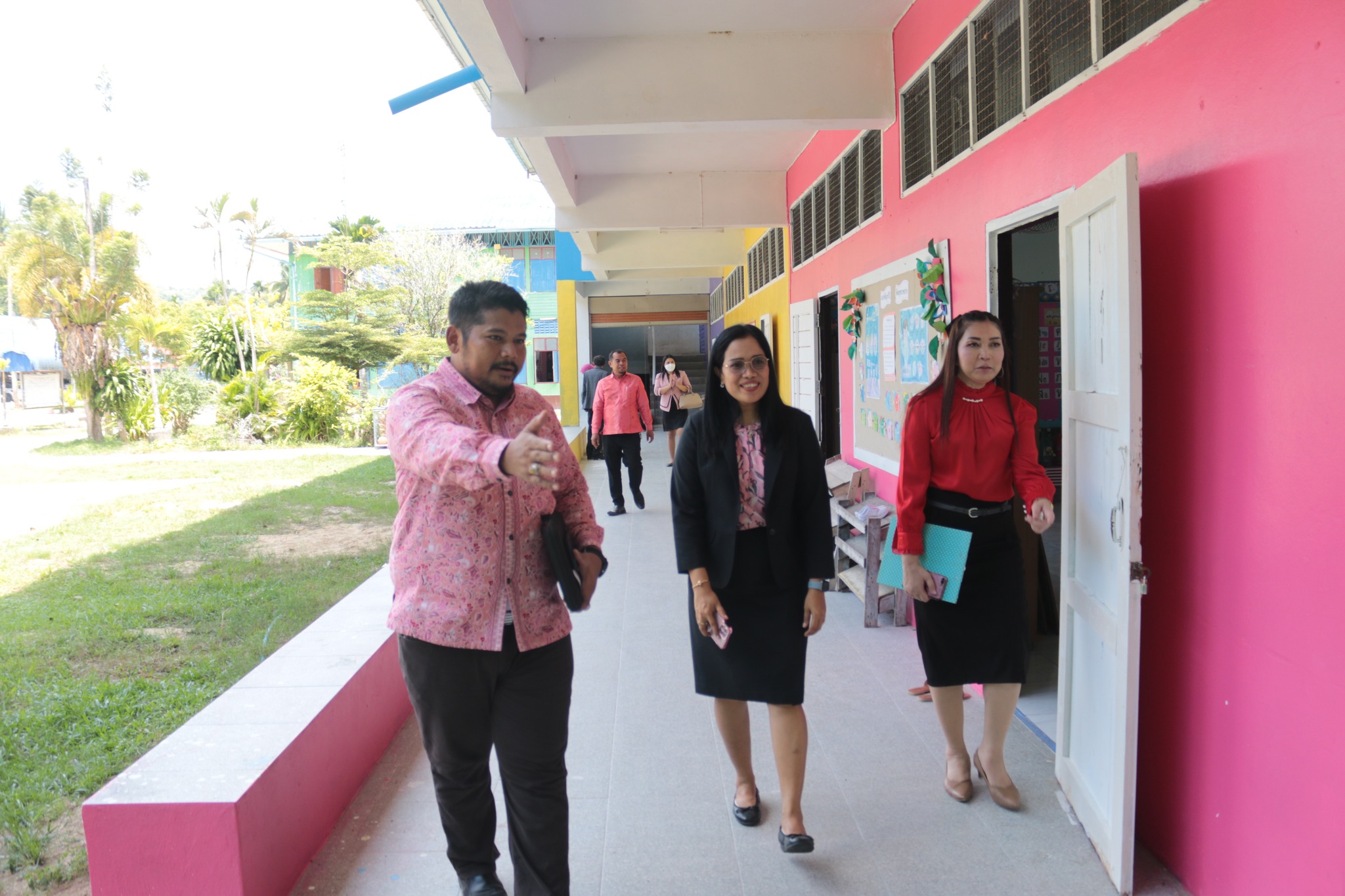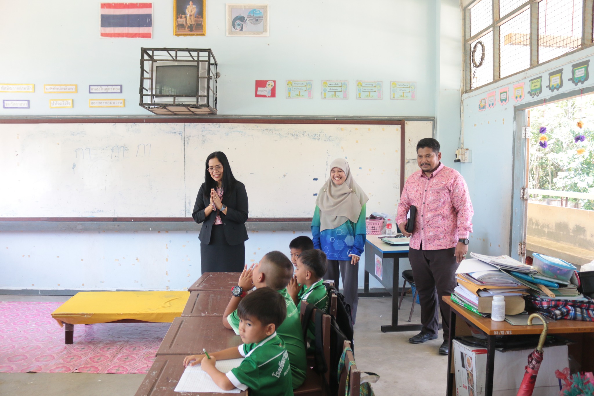 นายนริศ นิมอ ผู้อำนวยการโรงเรียนบ้านบลูกาสนอ พร้อมด้วยคณะครูและบุคลากรทางการศึกษา ร่วมต้อนรับ นางศิริพร ใจห้าว รองผอ.สพป.นราธิวาส.เขต1