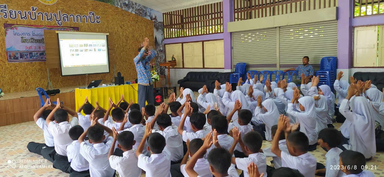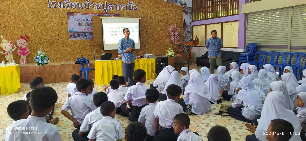 วันที่ 8 มิถุนายน 2566 นางสาวสุพิชญ์ สุขใส ผู้อำนวยการโรงเรียนบ้านปูลากาป๊ะ ได้มอบหมายให้นายอนัส บินอาแซ และคณะครู โรงเรียนบ้านปูลากาป๊ะ จัดกิจกรรมค่ายคุณธรรม นำชีวิตมนุษย์ ได้เชิญวิทยากร จากโรงเรียนเมืองนราธิวาส เพื่อมาให้ความรู้แก่นักเรียนโรงเรียนบ้านปูลากาป๊ะ บันทึกข้อมูลเมื่อ 08-06-2566