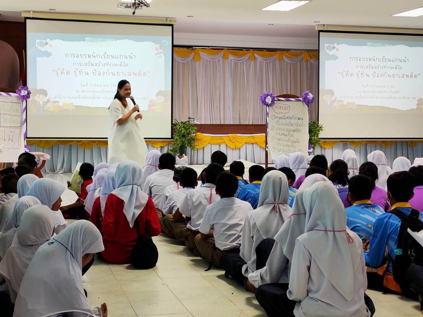 วันที่ 13 กันยายน 2566 เวลา 08.30 - 16.30 น. นายเชาวลี เล๊าะยีตา ผู้อำนวยการโรงเรียนบ้านแคนา มอบหมายให้ ครูกิส หะยีแฉะ นำนักเรียนระดับชั้นประถมศึกษาปีที่ 6 และชั้นมัธยมศึกษาปีที่ 1-3 เข้าอบรมนักเรียนแกนนำการเสริมสร้างทักษะชีวิต รู้คิด รู้ทัน ป้องกันยาเสพติด ณ หอประชุมเฉลิมพระเกียรติฉลองสิริราชสมบัติ ครบ 60 ปี สำนักงานเขตพื้นที่การศึกษาประถมศึกษานราธิวาส เขต 1 บันทึกข้อมูลเมื่อ 15-09-2566