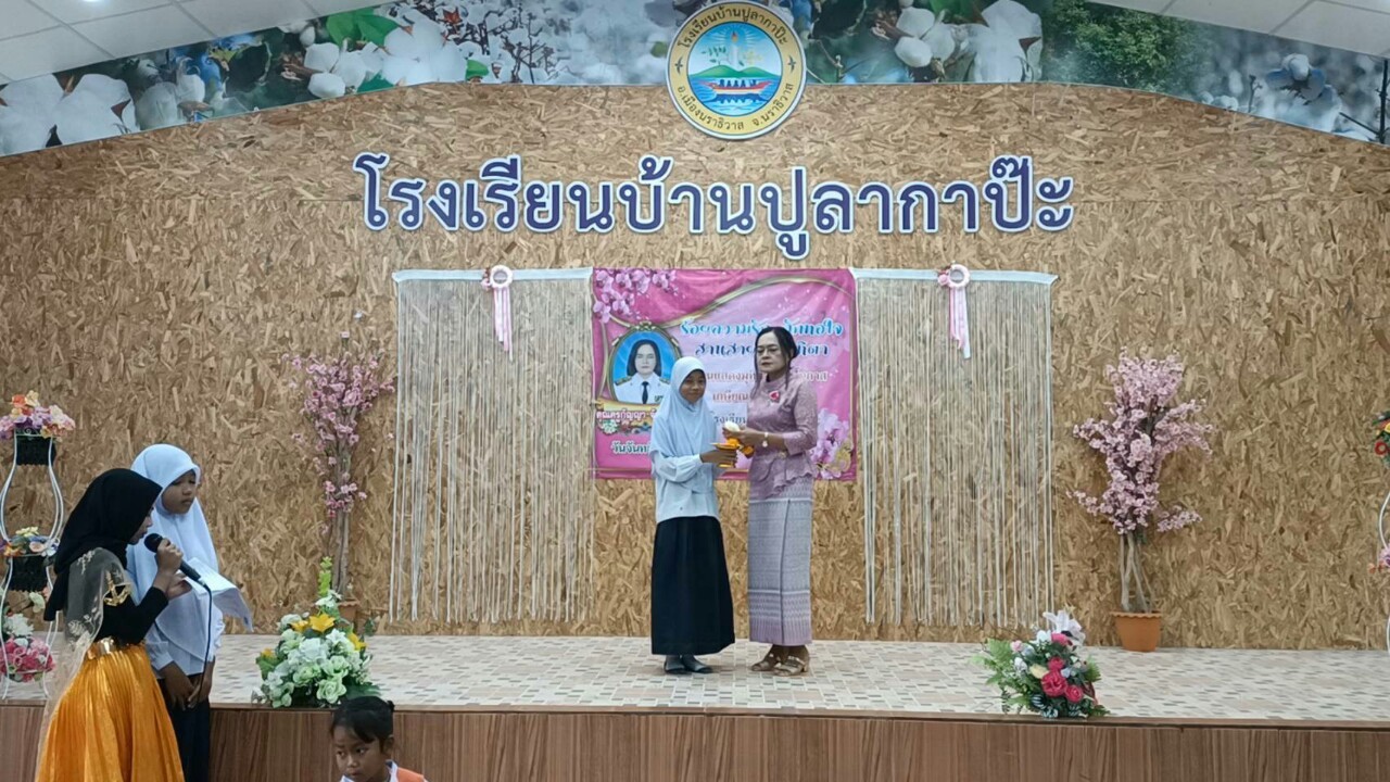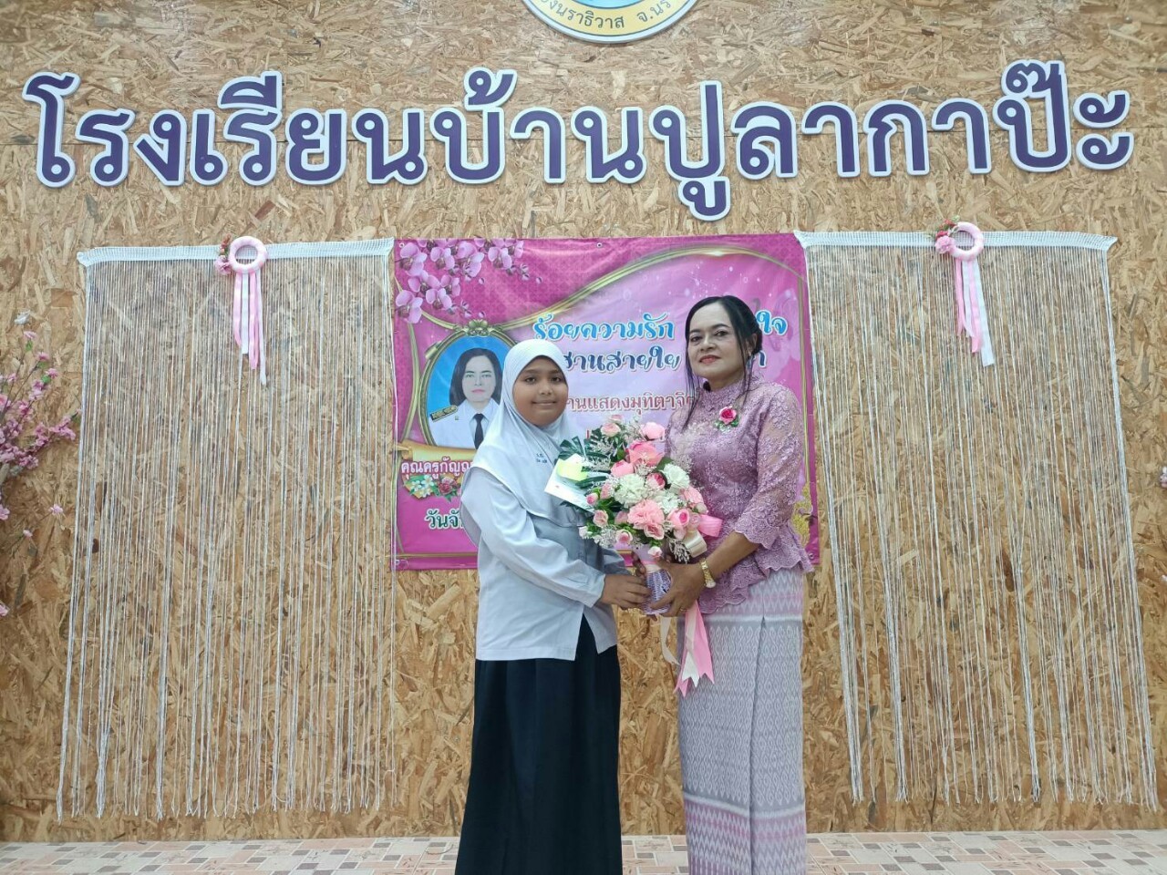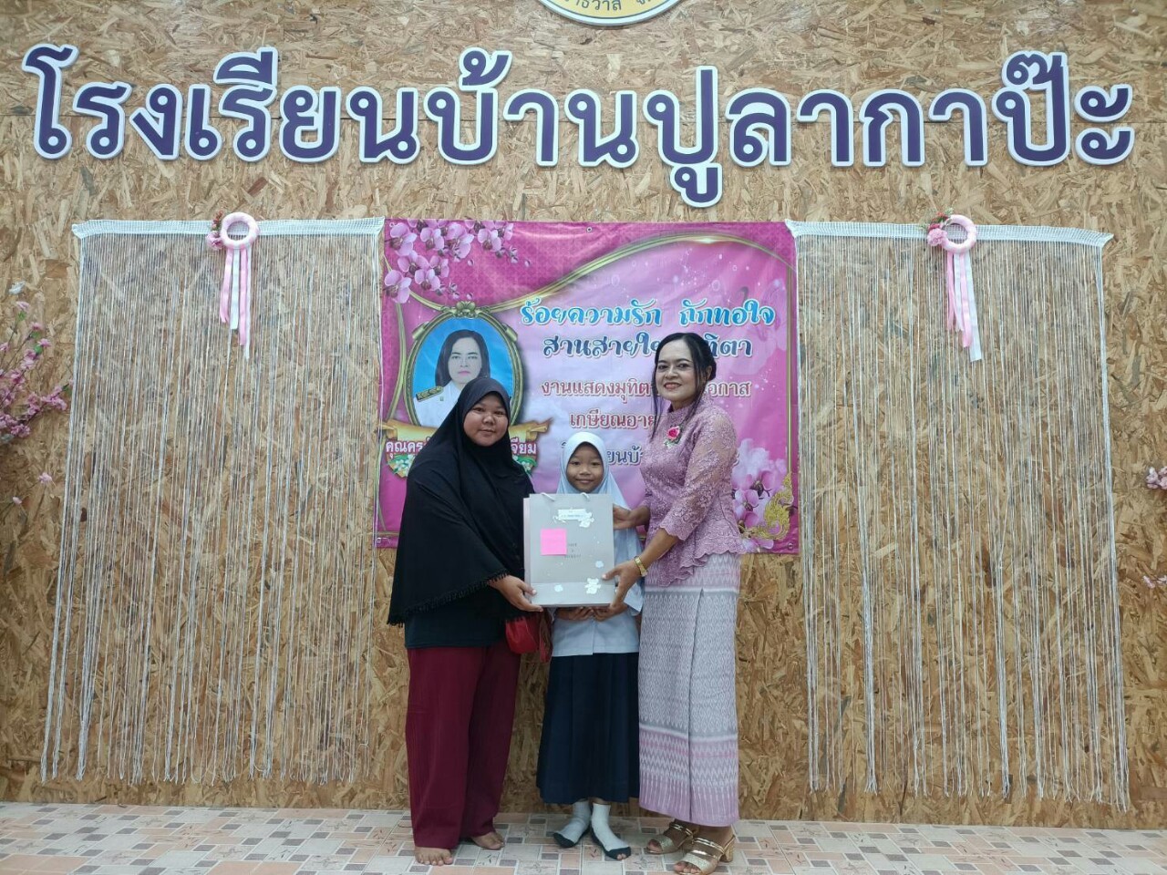 วันที่ 2 ตุลาคม 2566 นางสาวสุพิชญ์ สุขใส ผู้อำนวยการโรงเรียนบ้านปูลากาป๊ะ คณะครู บุคลากร นักเรียนและผู้ปกครองนักเรียนโรงเรียนบ้านปูลากาป๊ะ ได้จัดงานมุฑิตาจิต เกษียณอายุราชการ ให้แก่ นางกัญญา จันทร์เจียม ณ อาคารอเนกประสงค์โรงเรียนบ้านปูลากาป๊ะ บันทึกข้อมูลเมื่อ 02-10-2566