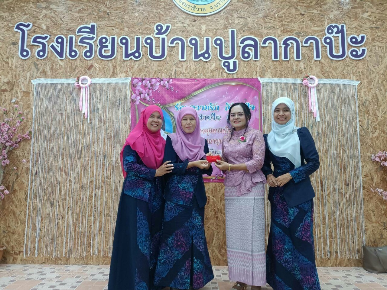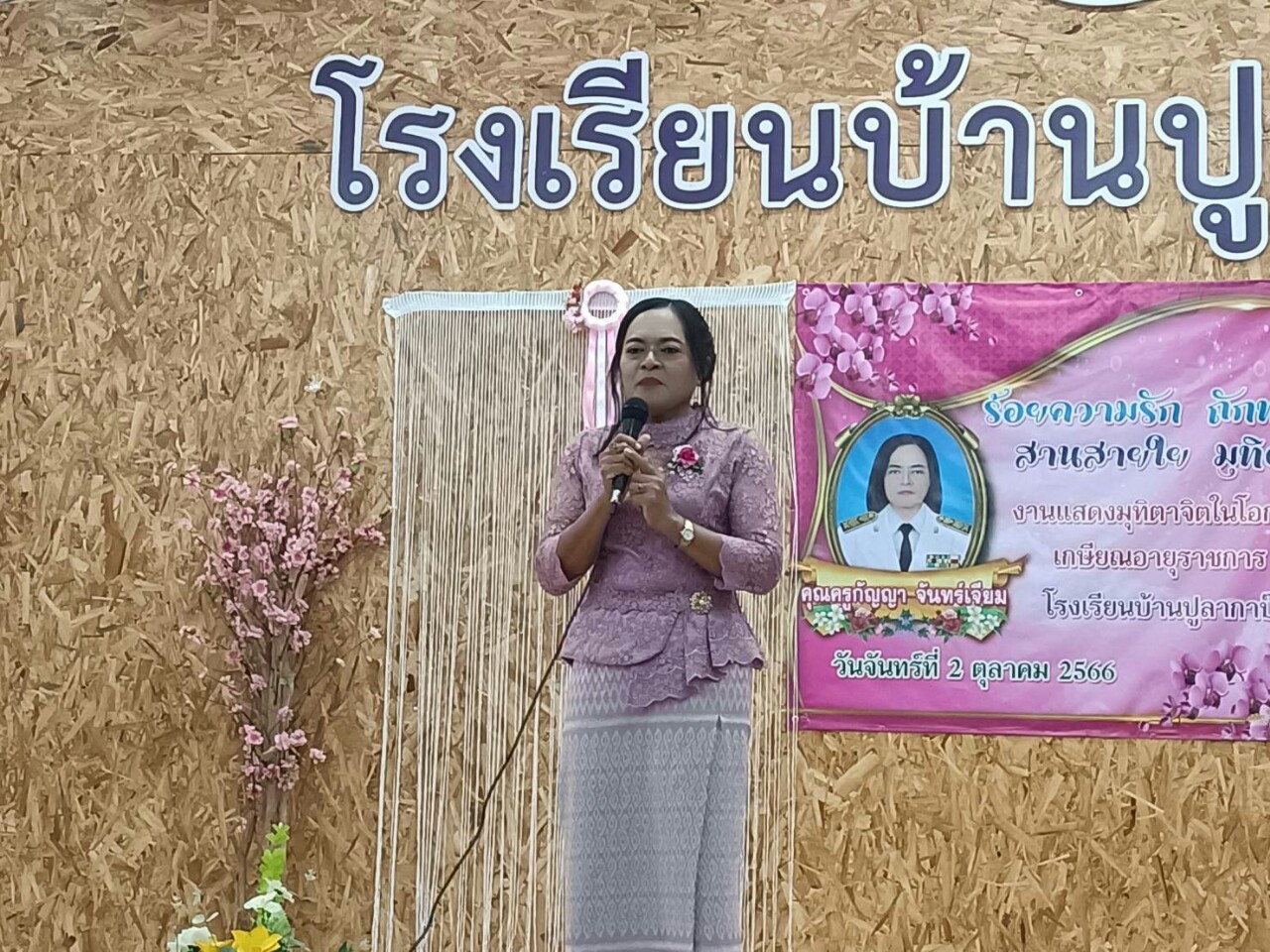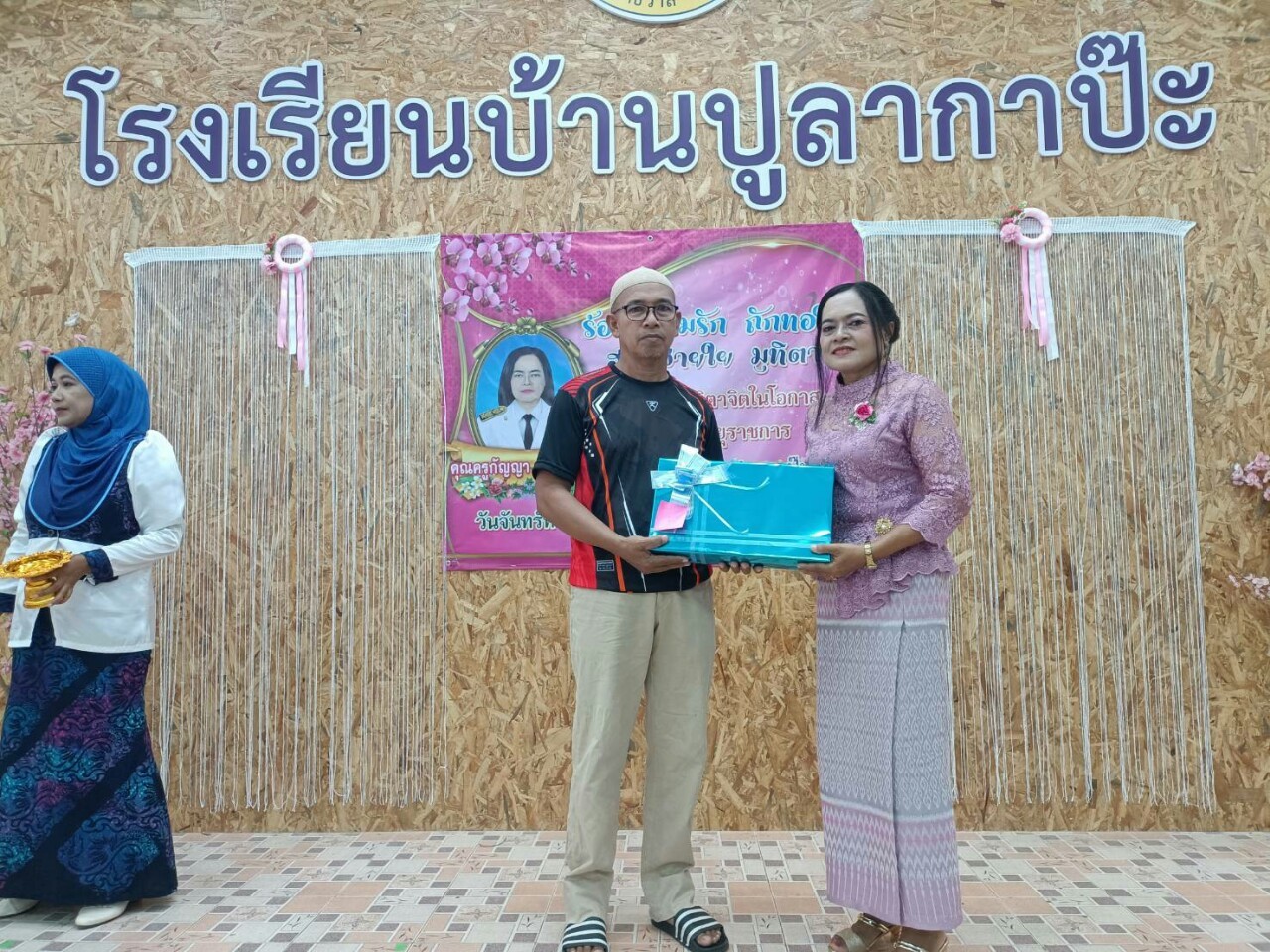 วันที่ 2 ตุลาคม 2566 นางสาวสุพิชญ์ สุขใส ผู้อำนวยการโรงเรียนบ้านปูลากาป๊ะ คณะครู บุคลากร นักเรียนและผู้ปกครองนักเรียนโรงเรียนบ้านปูลากาป๊ะ ได้จัดงานมุฑิตาจิต เกษียณอายุราชการ ให้แก่ นางกัญญา จันทร์เจียม ณ อาคารอเนกประสงค์โรงเรียนบ้านปูลากาป๊ะ บันทึกข้อมูลเมื่อ 02-10-2566