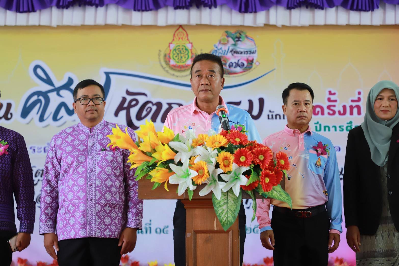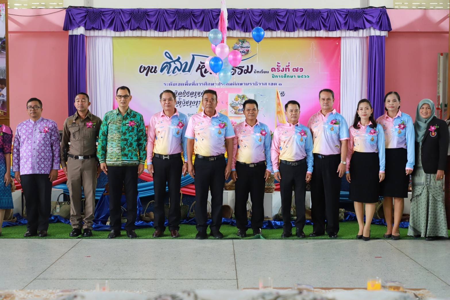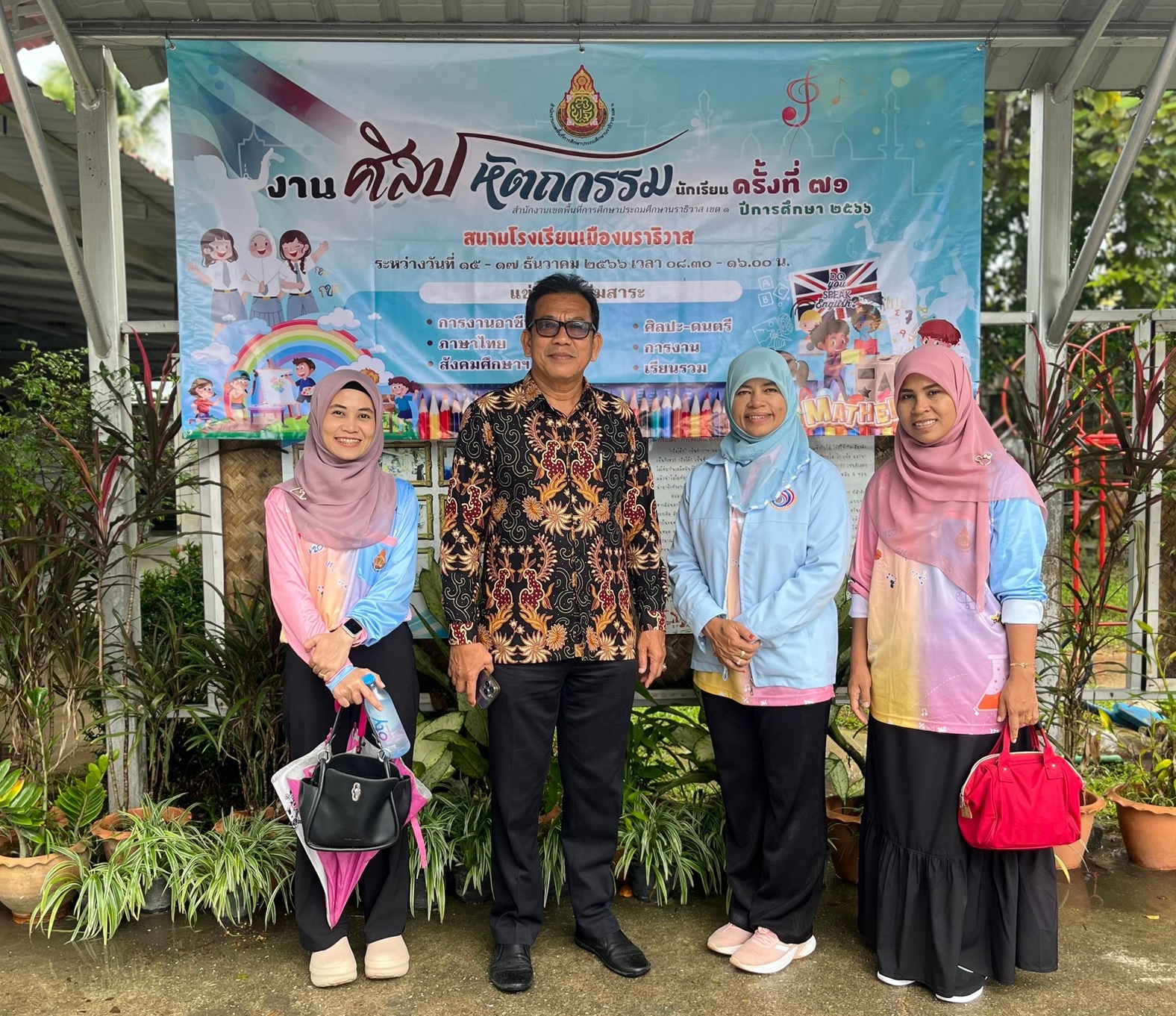 àÁ×èÍÇѹàÊÒÃì ·Õè 16 ¸Ñ¹ÇÒ¤Á 2566 ¹Ò§ÊÒǹ§¹Øª ¡Ñé§ÂÍ´ ¼ÙéÍӹǡÒÃâçàÃÕ¹ºéÒ¹à»Å ¾ÃéÍÁ´éǤ³Ð¤ÃÙâçàÃÕ¹ºéÒ¹à»Å ÃèÇÁ¾Ô¸Õà»Ô´§Ò¹ÈÔÅ»Ëѵ¶¡ÃÃÁ¹Ñ¡àÃÕ¹ ¤ÃÑé§·Õè 71 »Õ¡ÒÃÈÖ¡ÉÒ 2566 ÃдѺࢵ¾×é¹·Õè¡ÒÃÈÖ¡ÉÒ»ÃжÁÈÖ¡ÉÒ¹ÃÒ¸ÔÇÒÊ à¢µ 1 ¡ÒèѴ§Ò¹¤ÃÑé§¹Õéä´éÃѺà¡ÕÂõԨҡ¹Ò»ÃÕªÒ ¹ÇŹéÍ ·èÒ¹Ãͧ¼ÙéÇèÒÃÒª¡ÒèѧËÇÑ´¹ÃÒ¸ÔÇÒÊ ãËéà¡ÕÂõÔà»ç¹»ÃÐ¸Ò¹ã¹¾Ô¸Õ â´ÂÁÕ¹Ò¹ԵÂì ¾ÃËÁ»ÃÐÊÔ·¸Ôì ¼Í.ʾ».¹ÃÒ¸ÔÇÒÊ à¢µ 1 ¾ÃéÍÁ´éÇÂ