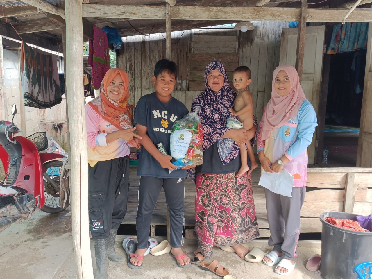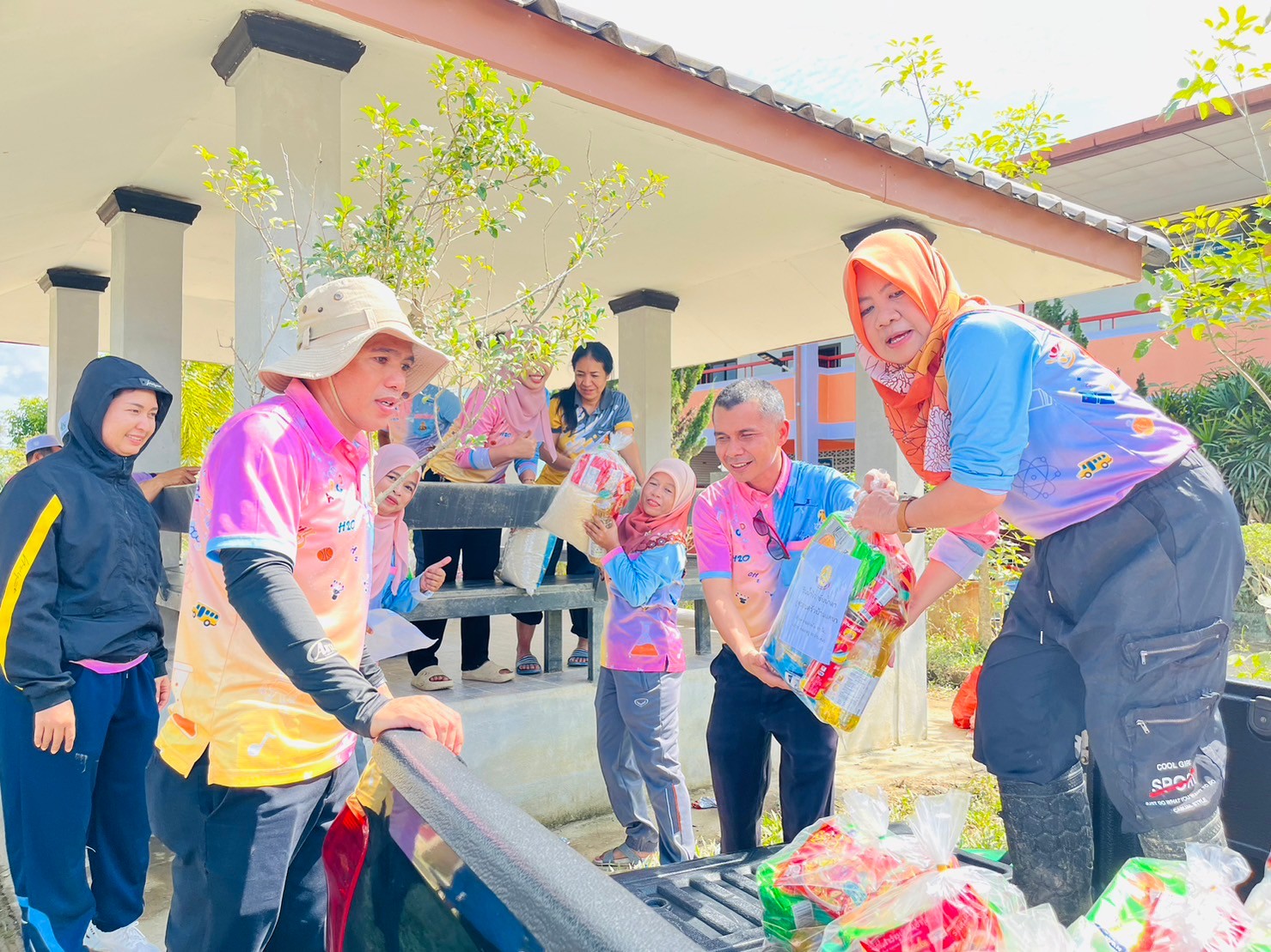 วันอังคารที่ 2 มกราคม 2567 นายอาซือลัน มามะ ผู้อำนวยการโรงเรียนบ้านแคนา พร้อมคณะครูและบุคลากรทางการศึกษา ลงพื้นที่ตรวจเยี่ยมให้กำลังใจและมอบถุงยังชีพข้าวสาร อาหารแห้ง สิ่งของที่จำเป็น แก่นักเรียนและครอบครัวที่ประสบภัยน้ำท่วมในพื้นที่ตำบลบางปอ อำเภอเมือง จังหวัดนราธิวาส จำนวน 136 ครัวเรือน บันทึกข้อมูลเมื่อ 02-01-2567