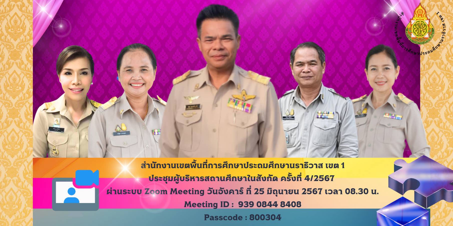 25 ÁÔ.Â. 2567 ¹Ò»ѭ¨Ð äªÂÈà ¼ÙéÍӹǡÒÃâçàÃÕ¹ºéÒ¹·Óà¹Õºä´éà¢éÒÃèÇÁ»ÃЪØÁ¼ÙéºÃÔËÒÃʶҹÈÖ¡ÉÒã¹Êѧ¡Ñ´Êӹѡ§Ò¹à¢µ¾×é¹·Õè¡ÒÃÈÖ¡ÉÒ»ÃжÁÈÖ¡ÉÒ¹ÃÒ¸ÔÇÒÊ à¢µ 1 ¤ÃÑé§·Õè 4/2567 ¼èÒ¹Ãкº Zoom Meeting
