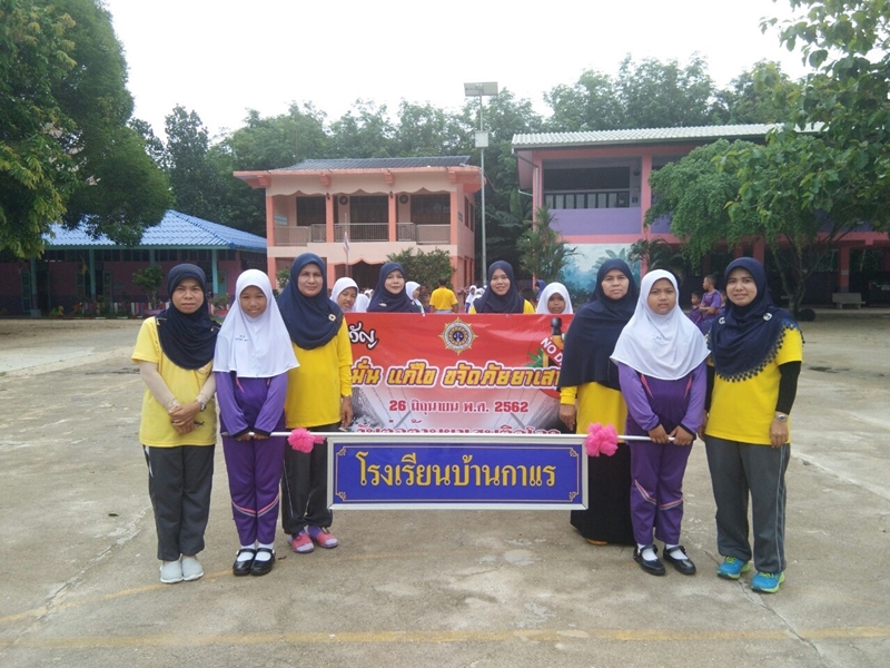 วันที่ 26 มิถุนายน 2562 นายอิสรา สะอีด ผู้อำนวยการโรงเรียนบ้านกาแร พร้อมด้วยคณะครู และนักเรียน ร่วมกันจัดกิจกรรมรณรงค์วันต่อต้านยาเสพติดโลก (26 มิถุนายน 2562) และอ่านสารของรัฐมนตรีว่าการกระทรวงศึกษาธิการเนื่องในวันต่อต้านยาเสพติด ประกาศเจตนารมณ์ต่อต้านยาเสพติด หน้าเสาธงหลังเคารพธงชาติ และเวลา 09.30 น เดินขบวนต่อต้านยาเสพติด และวาดภาพต่อต้านยาเสพติด โรงเรียนบ้านกาแรได้นำนักเรียนชั้นประถมศึกษาปีที่ 3-6 เข้าร่วมกิจกรรมในวันดังกล่าว บันทึกข้อมูลเมื่อ 26-06-2562
